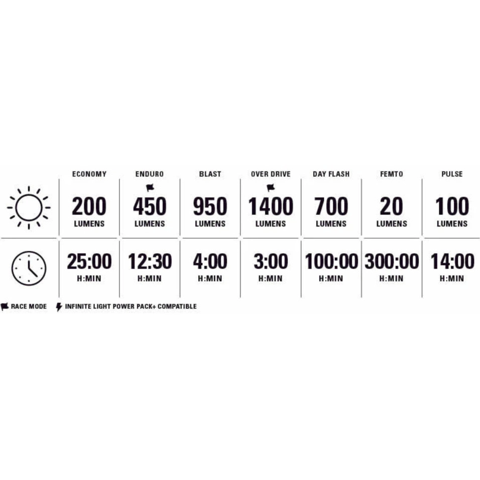 Der Lezyne Macro Drive 1400+ Scheinwerfer bietet vielseitige Montagemöglichkeiten und eine längere Akkulaufzeit. Es wurde einem strengen IPX7-Wasserbeständigkeitstest unterzogen und ist so konzipiert, dass es unterschiedlichsten Wetterbedingungen standhält. Wählen Sie aus sieben verschiedenen Ausgabemodi, vom auffälligen Tageslicht-Blitzmodus bis zum beeindruckenden Femto-Modus mit 300 Stunden Laufzeit, entsprechend Ihren Beleuchtungsanforderungen. Ein vielseitiger, austauschbarer Riemen sichert es an Lenker unterschiedlicher Größen. SPEZIFIKATIONEN: Max. Lumen: 1400 Maximale Autonomie: 300 Stunden Batteriekapazität (mAh) 5200 Ladetyp: USB-C Gewicht: 230g Abmessungen: 102.5mm , 47 mm, 32.5mm Eigenschaften: IPX7, Tageslichtblitz, Carrera , Infinite Light Power Pack+ |