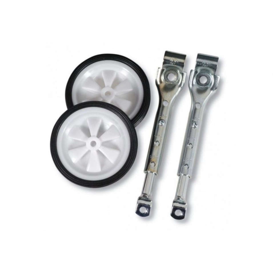 Höhenverstellbare Seitenstabilisatoren für Kinderfahrräder von 350A bis 500A und von 16" bis 20" Art der Befestigung an der Nabenachse mit Gewinde an der Seite des Rahmens. Räder mit 120 mm Gummiprofil. |