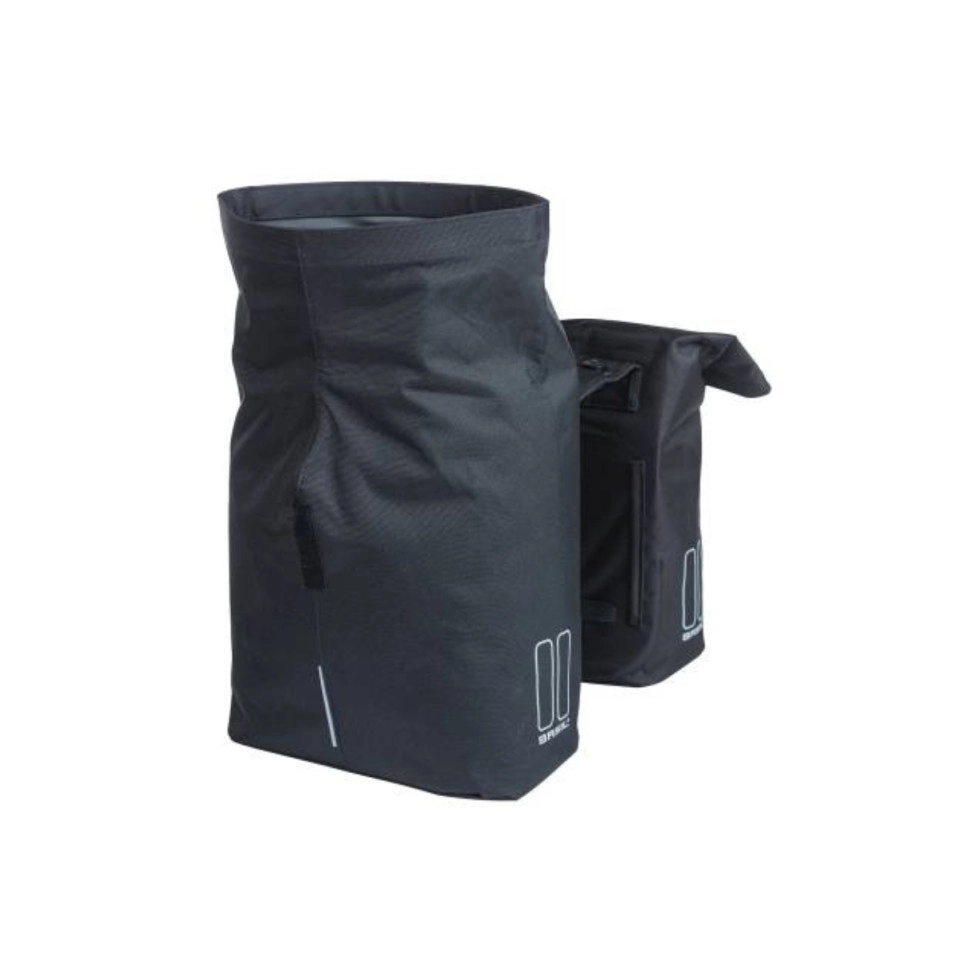 Ideal dafür sind die wasserdichten Satteltaschen Basil City Mik 28-32L mit Reflektoren , die dank der Höhe des Faltverschlusses mit Klettverschluss von 28 auf 32 Liter erweitert werden können.