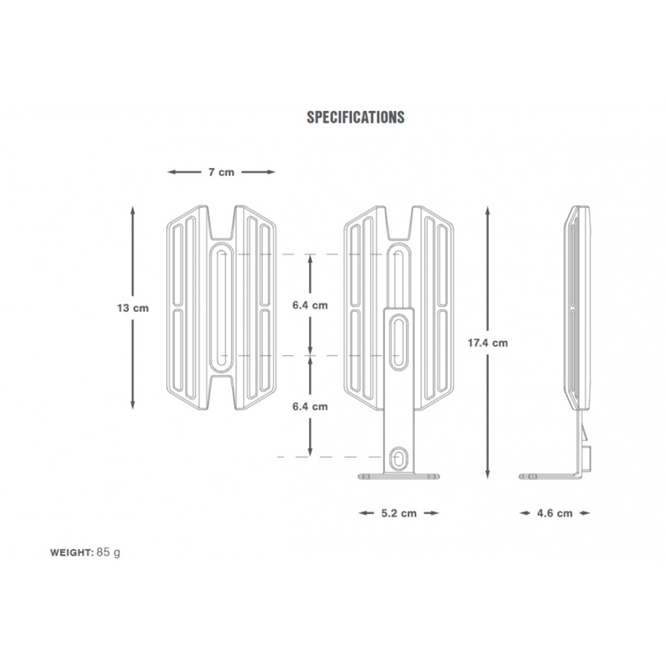 Die Apidura Bag Cargo Cage Mount verfügt über eine Zwei-Schrauben-Montageplatte, ergänzt durch einen optionalen Fuß, der verwendet werden kann, um den Käfig für Drei-Schrauben-Halterungen zu erweitern und zusätzliche Ladekapazität in jeder Konfiguration bereitzustellen. Ein aerodynamisches Design sorgt für Freiraum für die Kurbelgarnitur und das universelle Riemenbefestigungssystem sorgt für Vielseitigkeit, egal ob mit einem Apidura Expedition-Rucksack, Mullgurten oder Riemen- und Schnallensystemen. Der Innovation Lab Cargo Cage besteht aus einer leichten eloxierten ADC-12-Aluminiumlegierung und ist robust und korrosionsbeständig. Die Apidura Cargo Cage Bag Support ist sowohl mit dem Expedition Cargo Cage Pack (1,3 l) als auch dem Expedition Fork Pack (3 l) sowie anderen gängigen Rucksäcken und Gurten kompatibel. Der Apidura Cargo Cage Bag Holder ist präzisionsgefertigt aus einer leichten ADC-12-Aluminiumlegierung und für eine korrosionsbeständige Oberfläche eloxiert. Im Lieferumfang sind drei M5-Sechskantschrauben aus Edelstahl enthalten. Materialien • ADC-12-Aluminiumlegierung, schwarz eloxiert • 3 Edelstahlschrauben mit M5 12 mm Sechskantkopf |