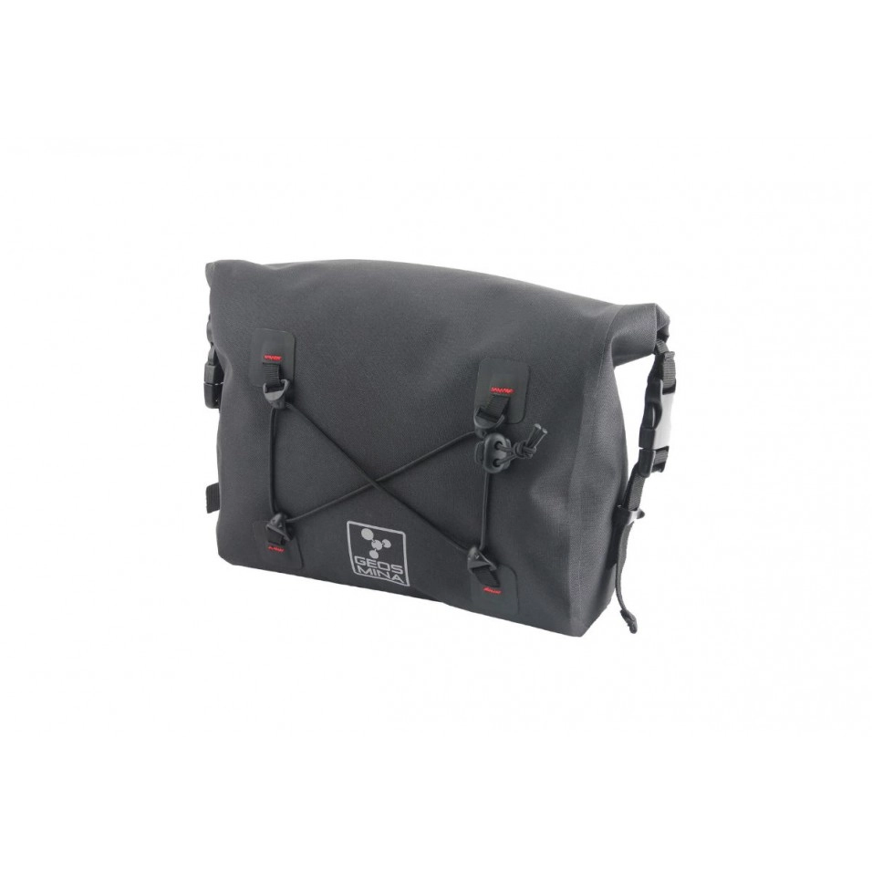 Die kleine Geosmina Lenkertasche besteht vollständig aus 600D-Nylon und Hypalon und verfügt über hochfrequenzversiegelte Nähte. Dieses Nylon ist absolut wasserdicht und verfügt über eine äußere PU-Behandlung (Polyurethan), die Wasser abweist und dafür sorgt, dass die Tasche bei Kontakt mit Luft schnell trocknet. Die Geosmina Small Lenkertasche verfügt über eine TPU-Folie (Thermoplastisches Polyurethan), die sie zusammen mit den versiegelten Nähten absolut wasserdicht macht. Es verfügt über einen Rollverschluss, der für Wasserdichtigkeit sorgt.