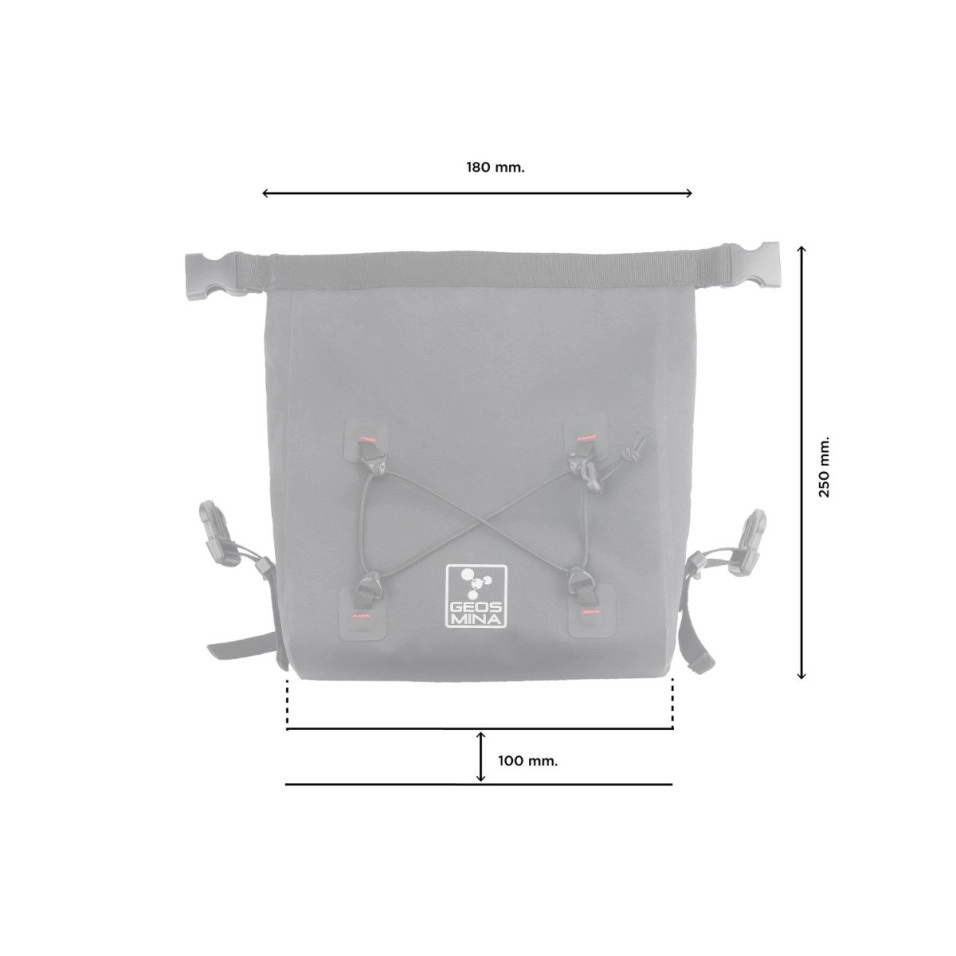 Die Geosmina Small Handlebar Bag 2024 Lenkertasche besteht vollständig aus Nylon 600D und Hypalon und die Nähte sind mittels Hochfrequenzversiegelung abgedichtet. Dieses Nylon ist vollständig wasserdicht und hat eine äußere PU-Beschichtung, die Wasser abweist und die Tasche schnell an der Luft trocknen lässt. Die Geosmina Small Handlebar Bag 2024 Lenkertasche hat eine TPU-Folie (thermoplastisches Polyurethan), die zusammen mit den versiegelten Nähten vollständig wasserdicht ist. Sie verfügt über einen rollbaren Verschluss, der die Dichtheit gewährleistet.