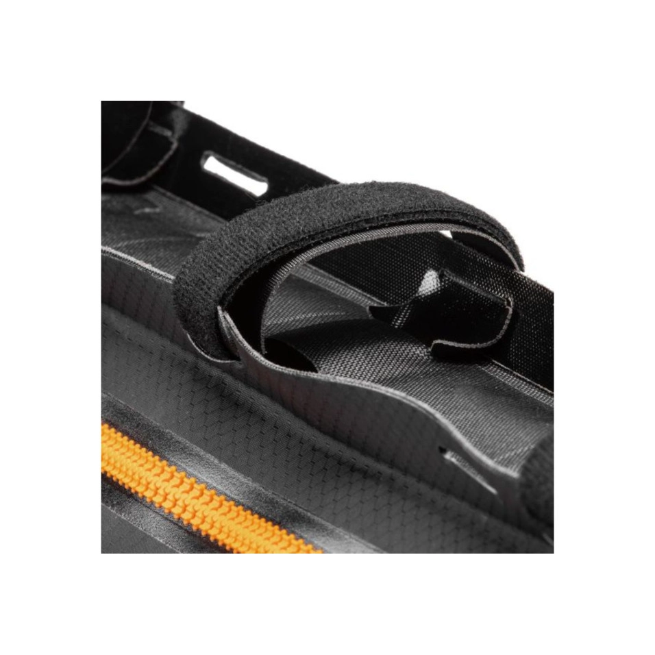 Das geprüfte, wasserdichte Nylongewebe sorgt in Verbindung mit dem wasserdichten Reißverschluss dafür, dass der Inhalt auch unter widrigsten Bedingungen trocken bleibt. Die Montage ist sehr einfach und erfolgt mit robusten und stark haftenden Klettverschlüssen am Oberrohr des Rahmens sowie mittels seitlicher und variabler Gurte, die an der Sattelstütze und dem Unterrohr befestigt werden. Eigenschaften: Gewicht: 232g | 8.2oz Höhe: 29 cm | 11 Zoll Breite: 50cm | 19 Zoll Tiefe: 6cm | 2 Zoll Volumen: 6L | 366.1cu Kubikzoll |