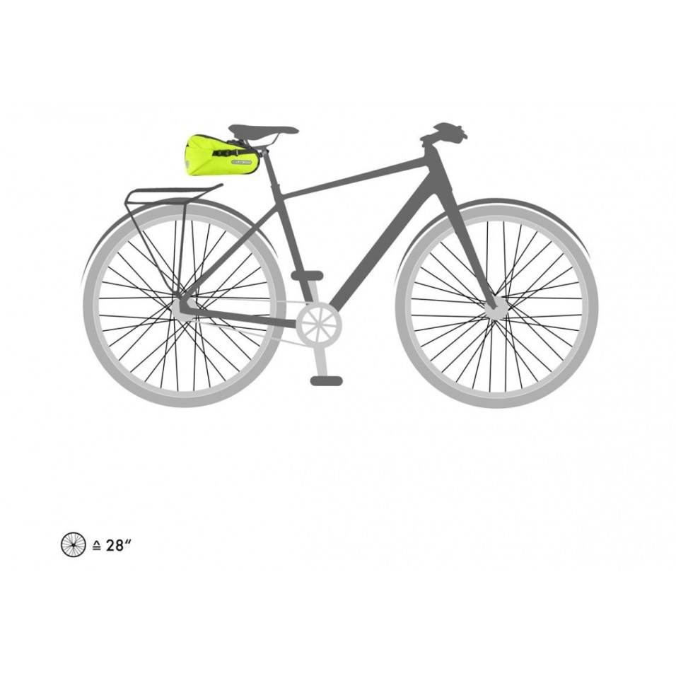 Sehr helle Tasche für den Sattel, die einiges fasst! Mit einfachem Adaptersystem – für eine besonders einfache und schnelle Handhabung. Ein echter Klassiker von ORTLIEB in überarbeiteter Version: Der Saddle-Bag Two High Visibility Regenmantel besteht aus einem allover reflektierenden Stoff in einer auffälligen Kombination aus Neongelb und Schwarz für erhöhte Sichtbarkeit. Mit einem Volumen von 4,1 l ersetzt die Satteltasche einen kleinen Rucksack. Ideal für sportliche Radfahrer auf Straßen- und Mountainbikes und für alle, die mit minimalistischem Gepäck reisen möchten – oder als praktische Zusatztasche auf langen Touren mit viel Gepäck. Dank des komprimierbaren Rollverschlusses und der seitlichen Schnappverschlüsse lässt sich alles sicher und ohne Verschieben von einer Seite auf die andere verstauen und ermöglicht dennoch einen schnellen Zugriff. Die Saddle-Bag Two wird mit dem verstellbaren Klickverschluss direkt am Sattel befestigt. Der Adapter lässt sich sehr leicht bewegen und ermöglicht so eine schnelle Montage und Demontage. Darüber hinaus ist der Klickverschluss mit dem Vorgängermodell der Saddle-Bag Two kompatibel und kann so für verschiedene Fahrräder verwendet werden. Ein Klettverschluss an der Sattelstütze sorgt für zusätzliche Stabilität und verhindert unerwünschtes Hin- und Herbewegungen. Ein weiterer wichtiger Vorteil: Die große Satteltasche ersetzt fast den hinteren Kotflügel und schützt so vor den meisten Spritzern. PRAKTISCHE DETAILS: + Reflektierendes PVC-Gewebe + Geeignet für Mountainbikes, Rennräder oder Trekkingräder + Keine hervorstehenden Kunststoffteile auf der Innenseite + Inklusive verstellbarer Klemme zur Montage unter dem Sattel + Ausreichendes Klettband für einen Sattelstützendurchmesser bis 34,9 mm (z. B. Faltrad) + Bessere Sichtbarkeit im Scheinwerferlicht durch großflächiges reflektierendes Gewebe + Daisy Chain für optimalen Halt des Rücklichts MATERIAL PS50CX, PS50X TASCHENTYP Einzelne Tasche ADAPTER - GEWICHT 290g | 10,2 Unzen HÖHE 14 cm | 5,5 Zoll BREITE 21 cm | 21cm TIEFE 28 cm | 11,0 Zoll VOLUMEN 4,1 L | 250 Kubikzoll |