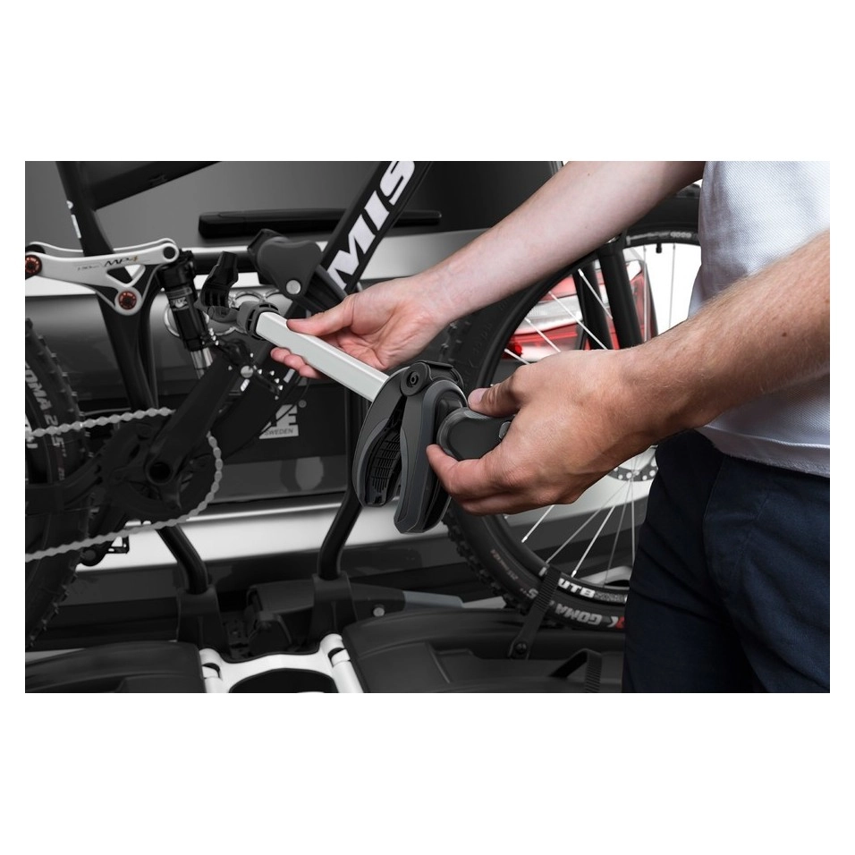 Merkmalen: . Vollständig faltbar für bequeme Montage, Handhabung und Aufbewahrung . Hohe Tragkraft ermöglicht den Transport von Elektrofahrrädern und schweren Mountainbikes . Einfaches Anbringen der Fahrräder durch abnehmbare Arme mit blockierbaren Thule AcuTight Drehmomentbegrenzern, die beim optimalen Anziehen hörbar einrasten . Großer Abstand zwischen Radklemmen ermöglicht den Transport schwerer Fahrräder mit größerem Radstand . Verstellbare Schnellverschluss-Schnallen mit langen Riemen für einfache Befestigung von Rädern (bis zu 4,7") für den Transport von Fatbikes . Neigungsfunktion mit Fußpedal für einfachen Zugang zum Kofferraum, auch mit montierten Fahrrädern . Einfache Montage und Einstellung des Fahrradträgers vor dem Schließen des Spannhebels dank der anfänglichen Stabilität beim Einrasten in die Anhängerkupplung . Ergonomischer Transport des Fahrradständers dank integrierter Transportrollen und Tragegriff . Vormontiert, keine Werkzeuge erforderlich . Fixiert und sperrt die Fahrräder am Fahrradträger und diesen an der Anhängerkupplung (Schlösser inklusive) . Max. Anzahl von Fahrrädern: 3 . Tragkraft: 60 kg . Max. Gewicht pro Fahrrad: 30 kg . Abmessungen: 123 x 83 x 86 cm . Abmessungen im gefalteten Zustand: 31 x 83 x 86 cm . Gewicht: 23,1 kg . Passend für Rahmengrößen: 22-80 mm . Max. Reifenbreite: 3" . Max. Radgröße (Durchmesser): 29" . Maximaler Abstand zwischen Rädern: 1300 mm . Abnehmbare Rahmenklemmen . Abstand zwischen Fahrrädern: 22/19 cm . Kompatibel mit Carbonrahmen. Adapter erforderlich: Thule Carbonrahmenschutz . Einstellbare Pumpen-Schnallen für die Radplatzierung . Kippfunktion (mit Fahrrädern) . Passend für Fahrzeuge mit externem Ersatzrad . Rückleuchten . Stromanschluss: 13-polig . Kompatibel mit dem One Key System . Fahrradschloss-Fahrradträgerverriegelung . Verriegelt den Fahrradträger am Auto |