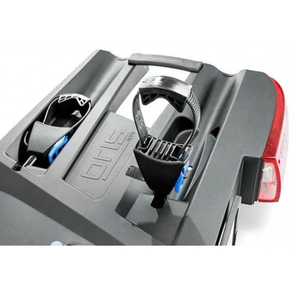 Eigenschaften: . Das Halogenbeleuchtungssystem ist modern und langlebig. Es ist in eine V-Strahlen-, hitze- und kältebeständige Kunststoffummantelung integriert. . Mit dem Pedalklappmechanismus ist der Zugang zum Kofferraum jederzeit möglich, auch wenn der Fahrradträger mit Fahrrädern beladen ist. . Mit dem Schnellspannsystem können Fahrräder in Sekundenschnelle auf den Fahrradträger geladen werden. . Die stabilen Rahmenhalterungen fixieren die Fahrräder sicher und schützen sie zudem vor Diebstahl. . Für das einfache und mühelose Verladen von E-Bikes ist optional eine Auffahrrampe erhältlich. . Als Zubehör für Fahrräder mit großem Rahmen gibt es auch extra lange Spanngurte. Spezifikationen: . Max. Anzahl Anzahl Fahrräder: 2 (erweiterbar auf 3) . Max. Anzahl Anzahl Elektrofahrräder: 2 . Eigengewicht: 16,9 kg / 18,4 kg . Maximale Kapazität Belastung: 60 kg . Abstand zwischen den Schienen: 230 mm . Geeignet für Rahmendurchmesser 25-80 mm / 80+ mm . Gepäckträger mit Diebstahlschutzschlüssel: Ja . Abschließbare Fahrräder am Fahrradständer: Ja . Zusammenklappbar, auch beladen: Ja . Elektrischer Anschluss: 13-polig . Zulassung: EU-Zulassung Abmessungen [L x B x H] . Ohne Verlängerung 3. Fahrrad 660 x 1330 x 650 mm . Mit 3. Fahrradverlängerung 790 x 1330 x 650 mm |