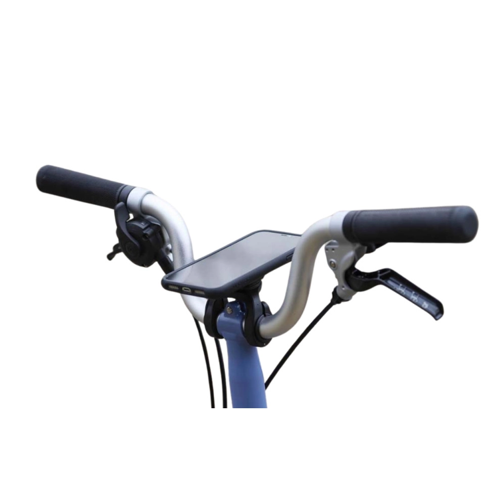 Die Brompton Quad Lock® Mobil Mount bietet eine stabile und sichere Möglichkeit, Ihr Telefon an Ihrem Fahrrad zu befestigen, sodass Navigation und Benachrichtigungen auch unterwegs gut sichtbar sind.