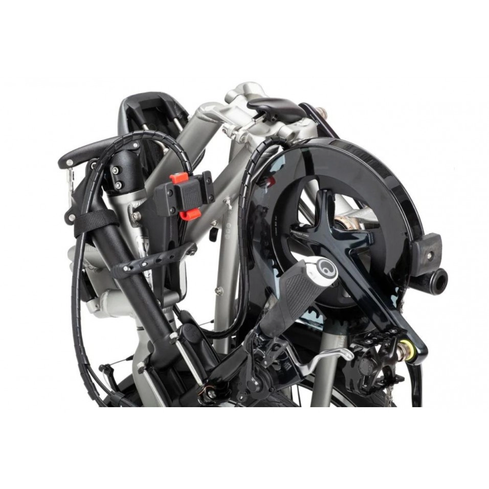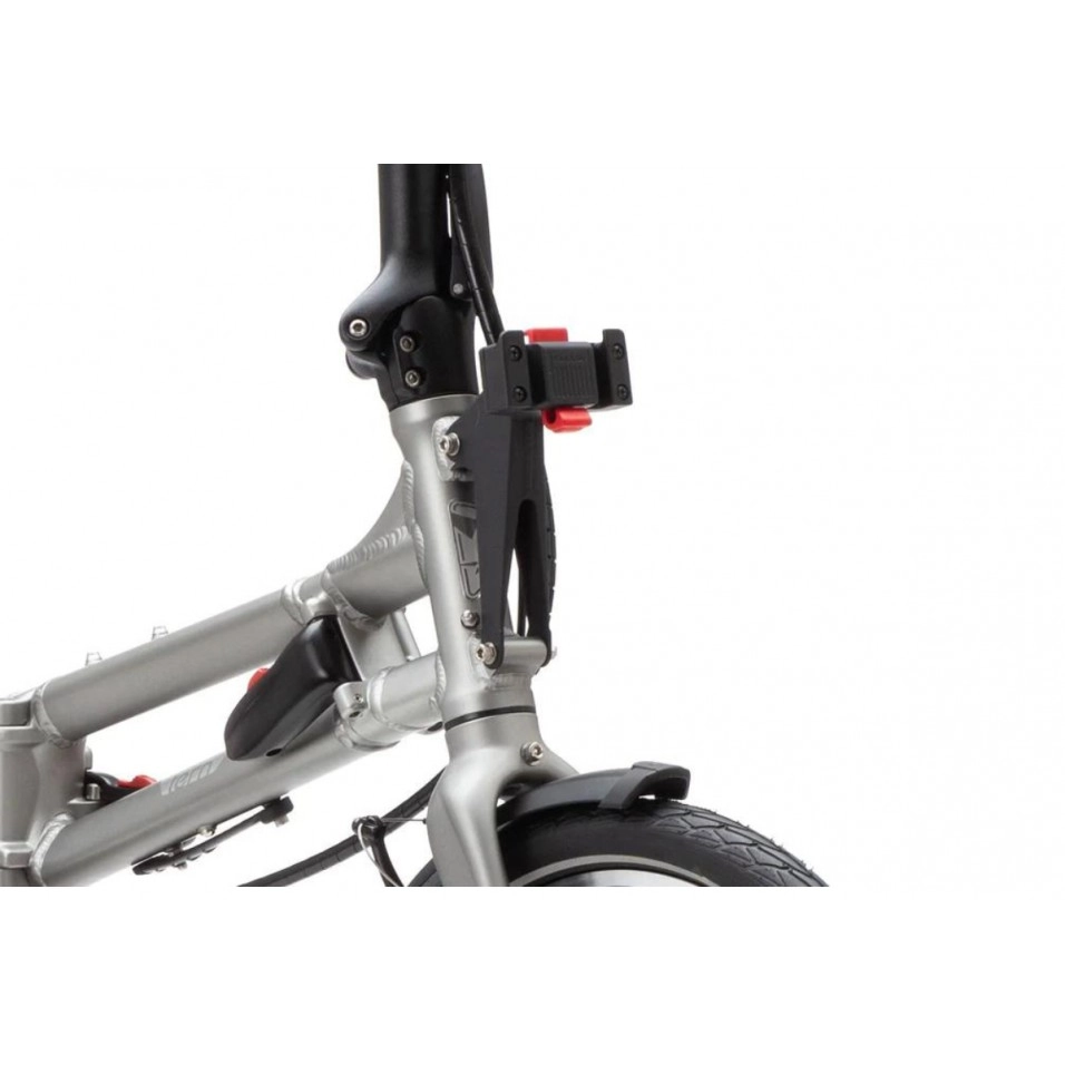 Jedes Tern Fahrrad ist mit sorgfältigen Details entworfen. Wenn Sie auf die Vorderseite des Rahmens schauen, finden Sie die Löcher, in denen Sie die Lugagge Truss Tern Clickfix CMT-Frontstütze montieren und die Last an der Vorderseite des Rahmens befestigen können. Da die Last am Rahmen und nicht an der Gabel montiert ist, können Sie sie wendig und einfach handhaben. Sie können Ihren Rucksack, Lebensmittel und empfindliche Gegenstände aufbewahren, da sie bei Bedarf jederzeit griffbereit sind.