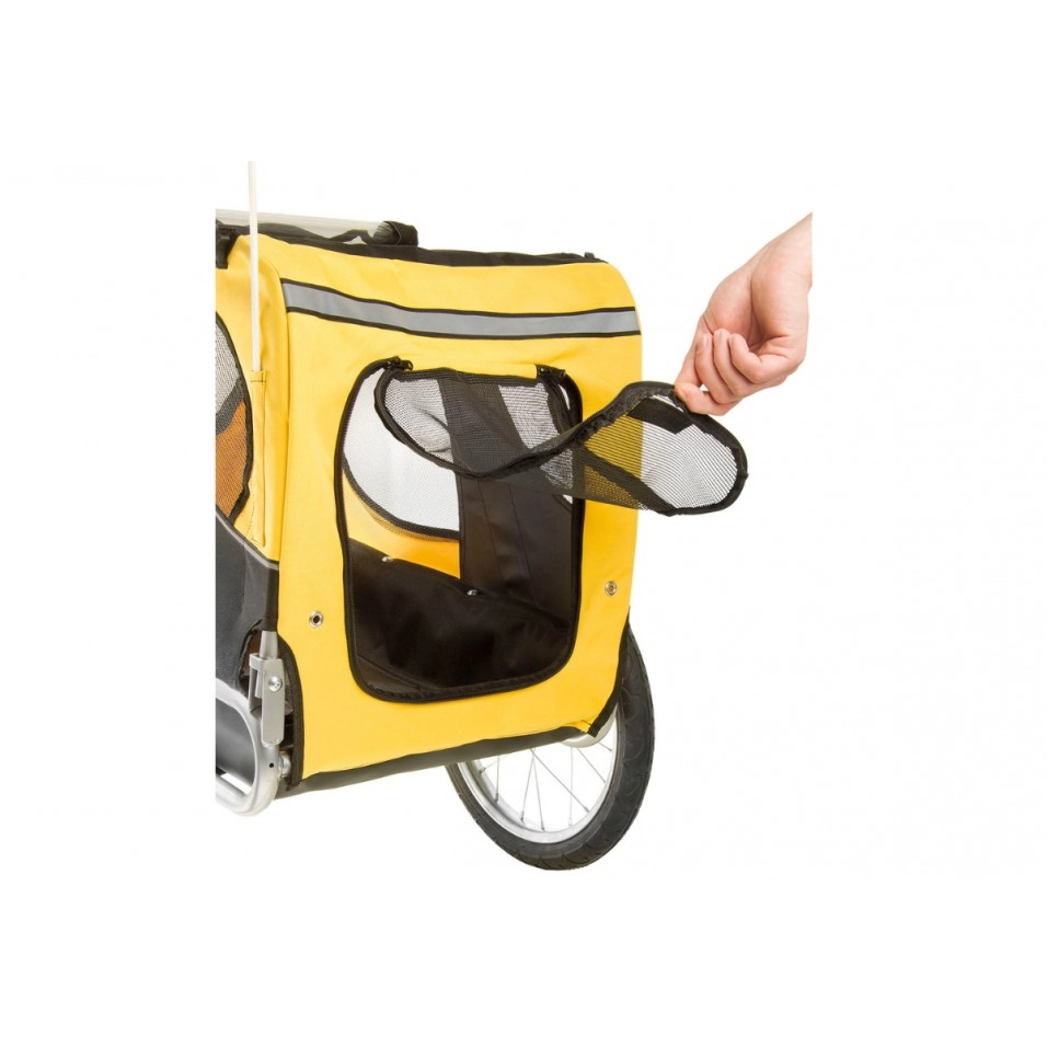 Eigenschaften: Schnellkupplung 16-Zoll-Räder mit Schnellspanner Der Anhänger ist faltbar Zusätzliche Vordertür/Fenster, damit Bello Teil des Geschehens sein kann Mit innenliegender Befestigungsschlaufe für Hundeleinen Fliegennetz, Regenschutz, gelbe Sicherheitsflagge im Lieferumfang enthalten Maximale Belastung: 30 kg Länge: 70 cm Breite: 52 cm Höhe: 23 cm |