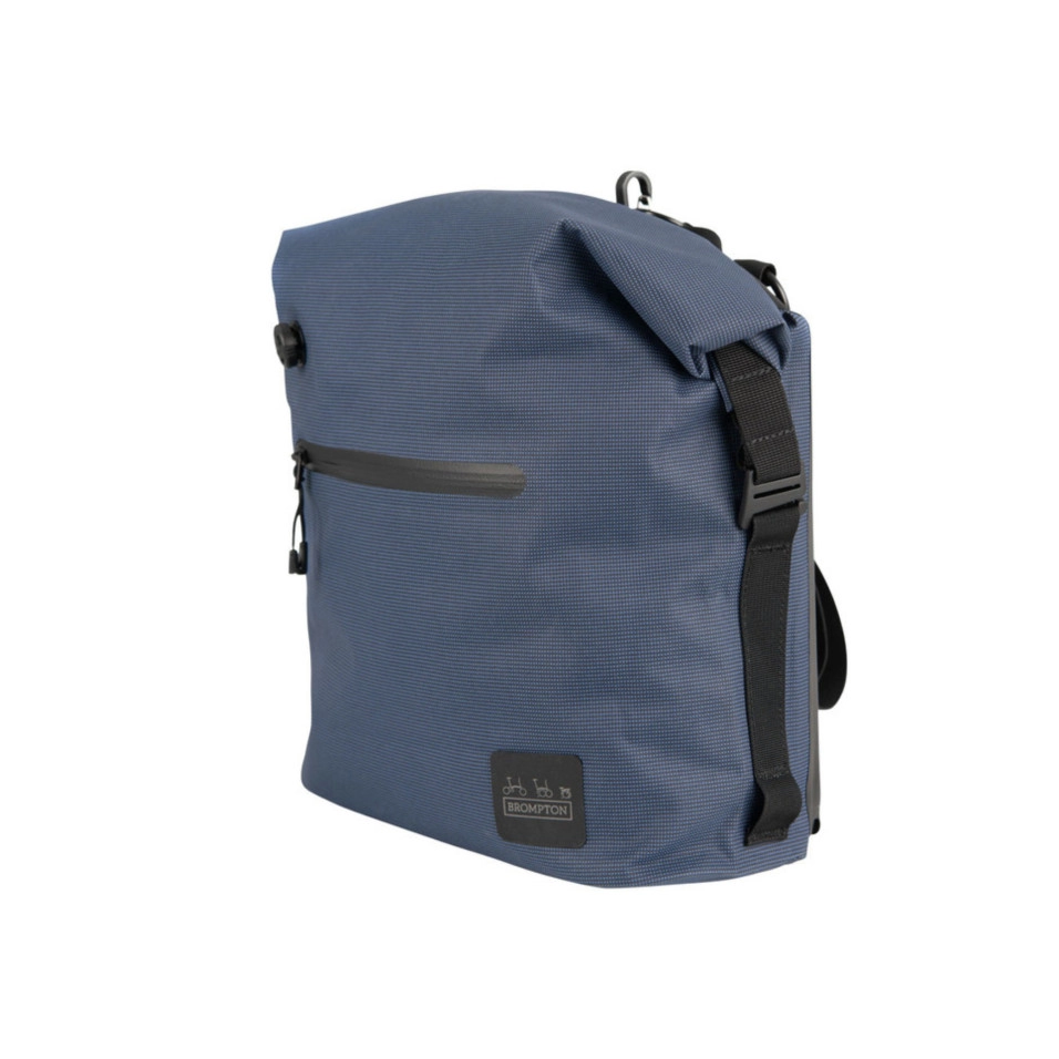 Das flexible Design dieser Tasche ermöglicht es Ihnen, sie als Umhängetasche oder Rucksack zu tragen – mit genau dem richtigen Platz für einen Tag voller Abenteuer. Eine Reißverschlusstasche vorne ermöglicht schnellen Zugriff auf Gegenstände während der Fahrt. Aluminiumbeschläge runden das Design dieser Tasche ab und sorgen für einen eleganten Look. Die Tasche verfügt über einen gummierten Tragegriff und ist somit mit ALLEN Brompton Lenker kompatibel. Diese Tasche lässt sich mit dem vorderen Gepäckträger an Ihrem Brompton Fahrrad befestigen und ist das perfekte Zubehör. Kompatibel mit allen Lenkertypen.