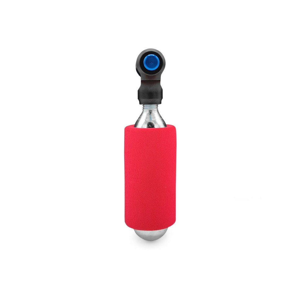 Tols CO2-Inflator-Set aus Aluminiumlegierung. Auslaufsicherer Gummiring. Gummi-EVA-Frostschutzabdeckung. Taste zur schnellen Inflationskontrolle. Drücken Sie die Taste, um die CO2-Freisetzungsrate zu regulieren. Der Kopfadapter drückt Presta- oder Schrader-Ventile. Kompatibel mit CO2-Kartuschen mit 16 g/25 g Gewinde. Das Kit enthält: 1 x 16-g-Patrone, 1 x Abzugskopf, 1 x EVA-Frostschutzabdeckung |