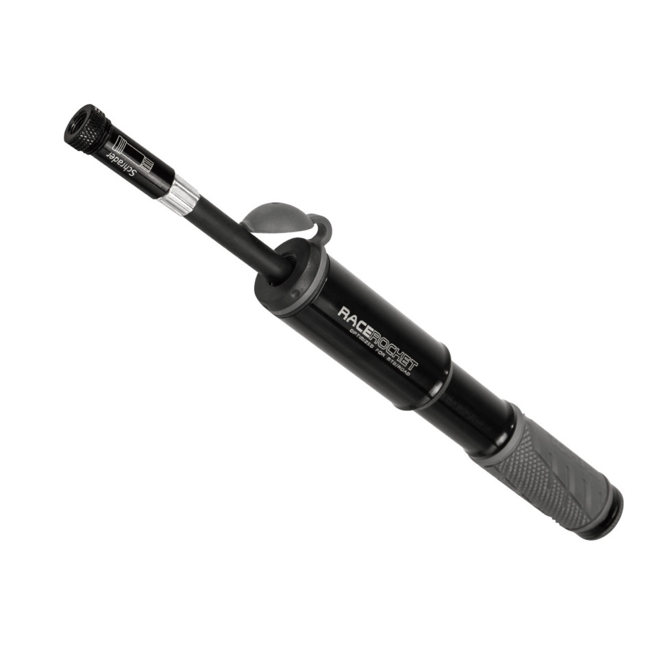 Ein erweiterbarer Schlauch trägt zur Entlastung des Ventilschafts bei und der zuverlässige Single-Action-Hub füllt die Reifen schnell auf. Die kompakte Größe des RaceRocket® passt problemlos in eine Trikottasche und sein geringes Gewicht ist bei langen Trainingseinheiten und Ausdauerrennen willkommen. Merkmale :