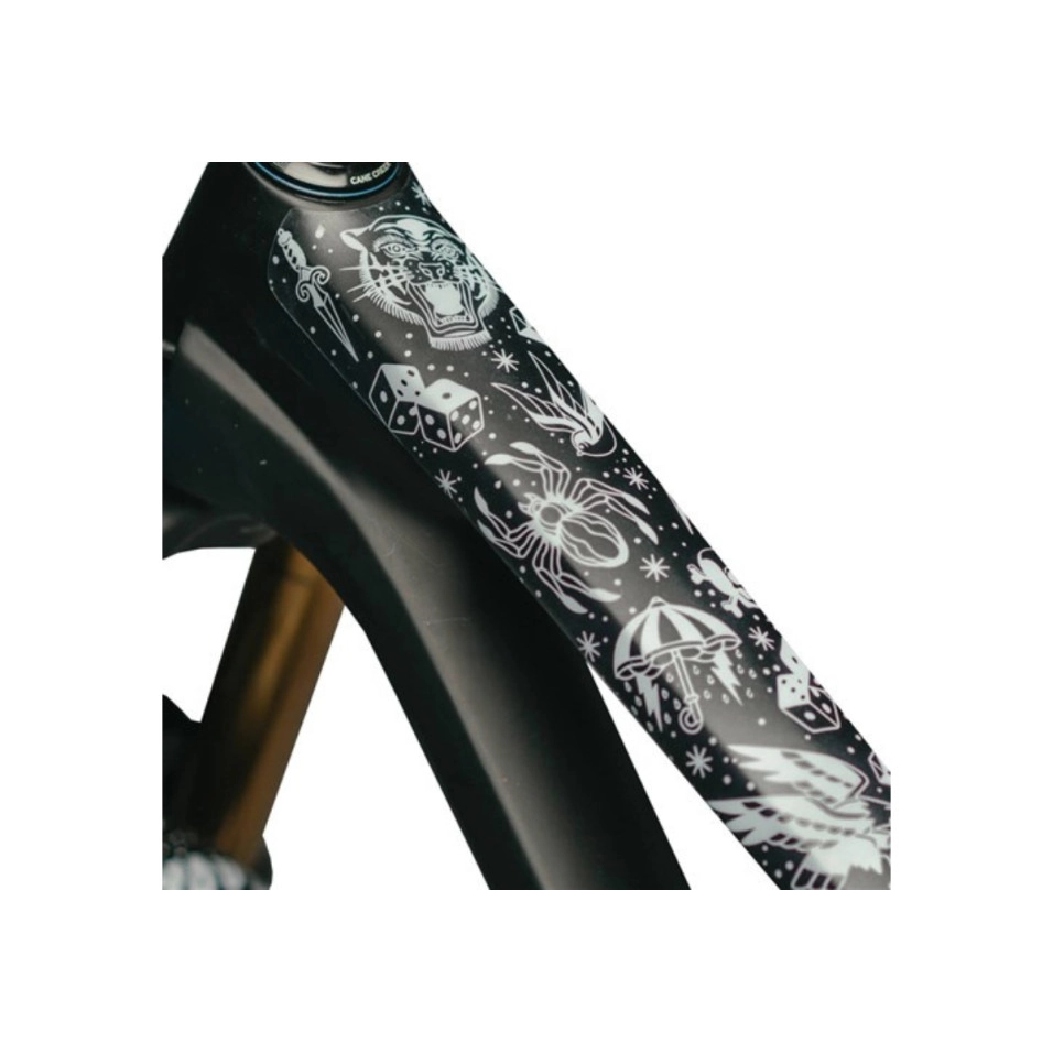 Personalisieren Sie Ihr Fahrrad mit den Vinyls von Escapa . Das Dyedbro Old School Tattoo Frame Protection Vinyl Kit schmückt Ihr Fahrrad und schützt es gleichzeitig vor Reibung und Stößen. Das digitale Latexdrucksystem wird aus Materialien höchster Qualität hergestellt und verwendet umweltfreundliche Tinten. Dadurch wird die Umweltbelastung reduziert und es trägt dazu bei, diese Qualität zu bewahren und die Lebensdauer des Vinyls zu verbessern.