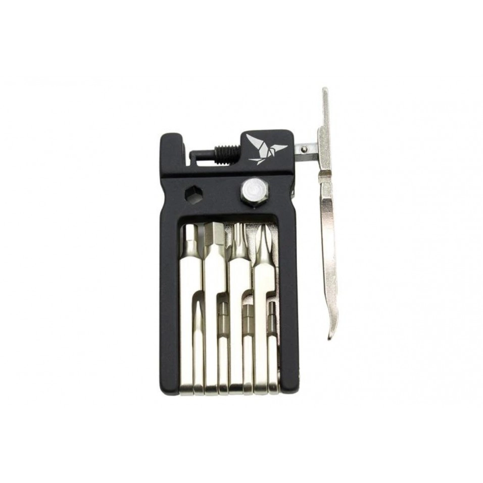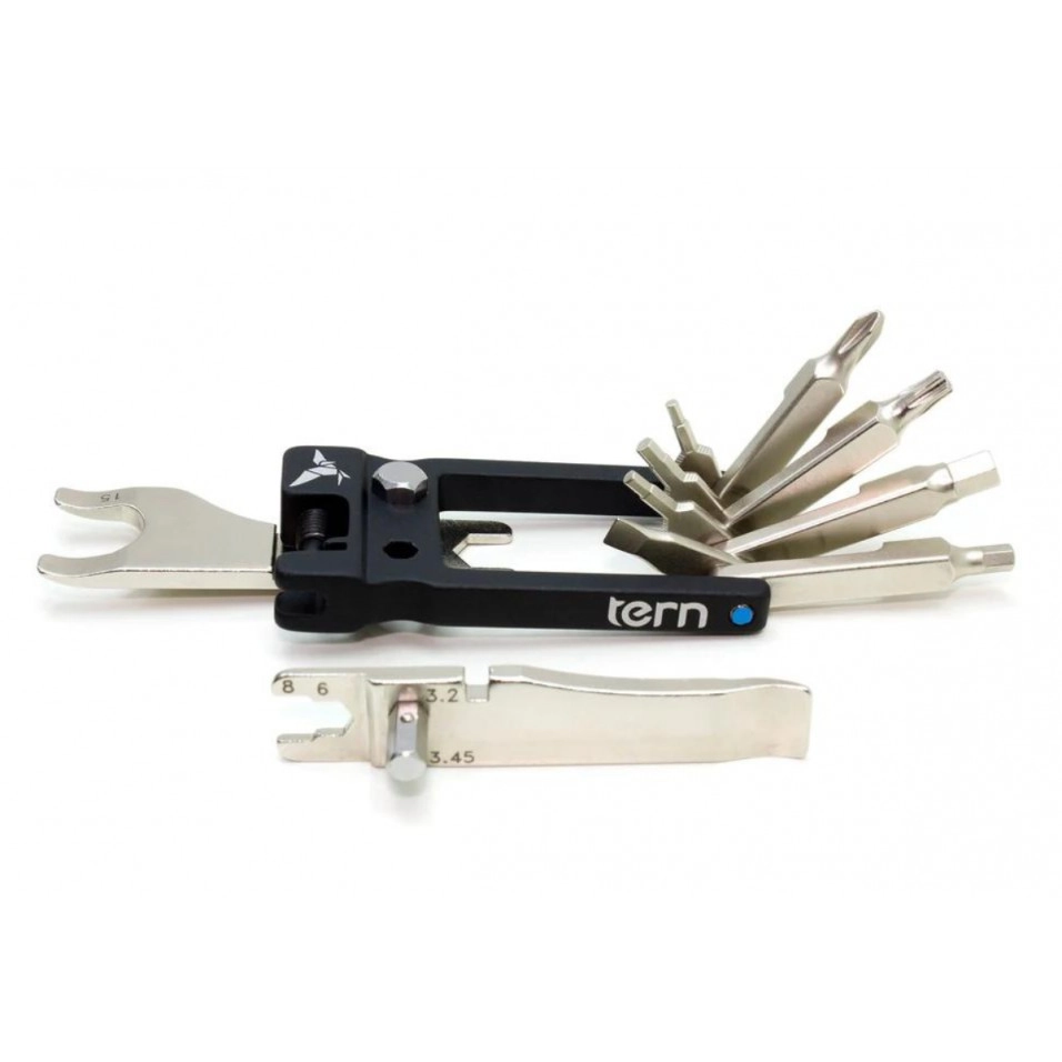 Das zusammenklappbare Multitool Tern mit 15-mm-Schraubenschlüssel. Es ist Ihr Verbündeter, wenn es darum geht, sicherzustellen, dass Ihre Radtour angemessen ist und Sie nicht mit Problemen am Straßenrand „stranden“. Das Tern Werkzeug wurde in erster Linie für die Verwendung an Ihrem Tern Fahrrad entwickelt und zeichnet sich durch seine 20 integrierten Werkzeuge aus, darunter ein 15-mm-Maulschlüssel zum Festziehen von Rad- und Pedalschrauben und ein 6-mm-Schlüssel zum Einstellen der Klapphebel.