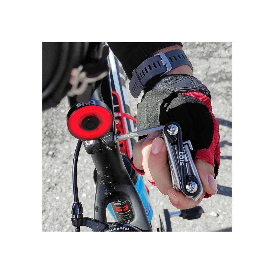 Sämtliches Zubehör und Komponenten der Marke Töls findest du bei Escapa . Das Tols Lexia 13 Multi-Tool und die Seitenwerkzeuge bestehen aus Aluminium und geschmiedetem und bearbeitetem Chrom-Vanadium-Stahl.