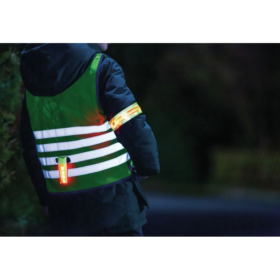 La Cinta Reflectante LED Abus Lumino Active Bar puede fijarse a las perneras de los pantalones o en las mangas de las chaquetas y aumenta considerablemente la visibilidad en el tráfico vial.