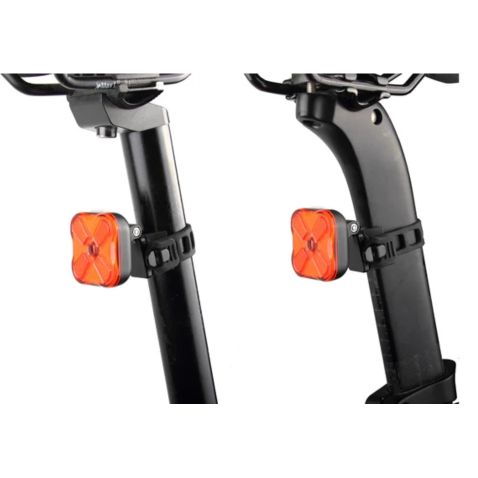 Características: Cuatro conjuntos de LED COB altamente eficientes y varios modos: Al disponer el LED COB en forma transversal, el CL06 proporciona un área de iluminación más amplia y una mayor visibilidad para los conductores. Este diseño también permite crear más combinaciones de modos de intermitencia para diversas necesidades. Sensores de luz y freno incorporados: Al detectar el frenado o los faros (> 50 lux) de los vehículos que se aproximan por detrás, el sensor de freno o luz activará el llamativo modo intermitente de advertencia con un máximo de 50 lúmenes para aumentar la visibilidad del conductor al máximo. Clip de montaje fácil de usar: Deslice la luz hacia adentro o hacia afuera del montaje fácilmente; También se puede recortar a algunas bolsas de sillín compatibles (correa de montaje de 1,2-1,5 cm recomendada) o mochilas directamente Soporte de correa de goma flexible: Diseño integrado de una sola pieza con gran compatibilidad con tijas de sillín redondas y aerodinámicas. También se puede montar en ciertos cascos. Puerto de carga USB-C: Conector reversible para cargar la luz fácilmente y sin necesidad de voltear buscando la orientación correcta Batería: batería recargable de polímero de litio de 500 mAh/3,7 V Dimensiones (unidad de luz): 43 mm (L)*22,5 mm (ancho)*44 mm (alto) Peso (unidad ligera): 31g Tamaño de montaje: compatible con tija de sillín redonda de φ 24-36 mm y tija de sillín aerodinámica |