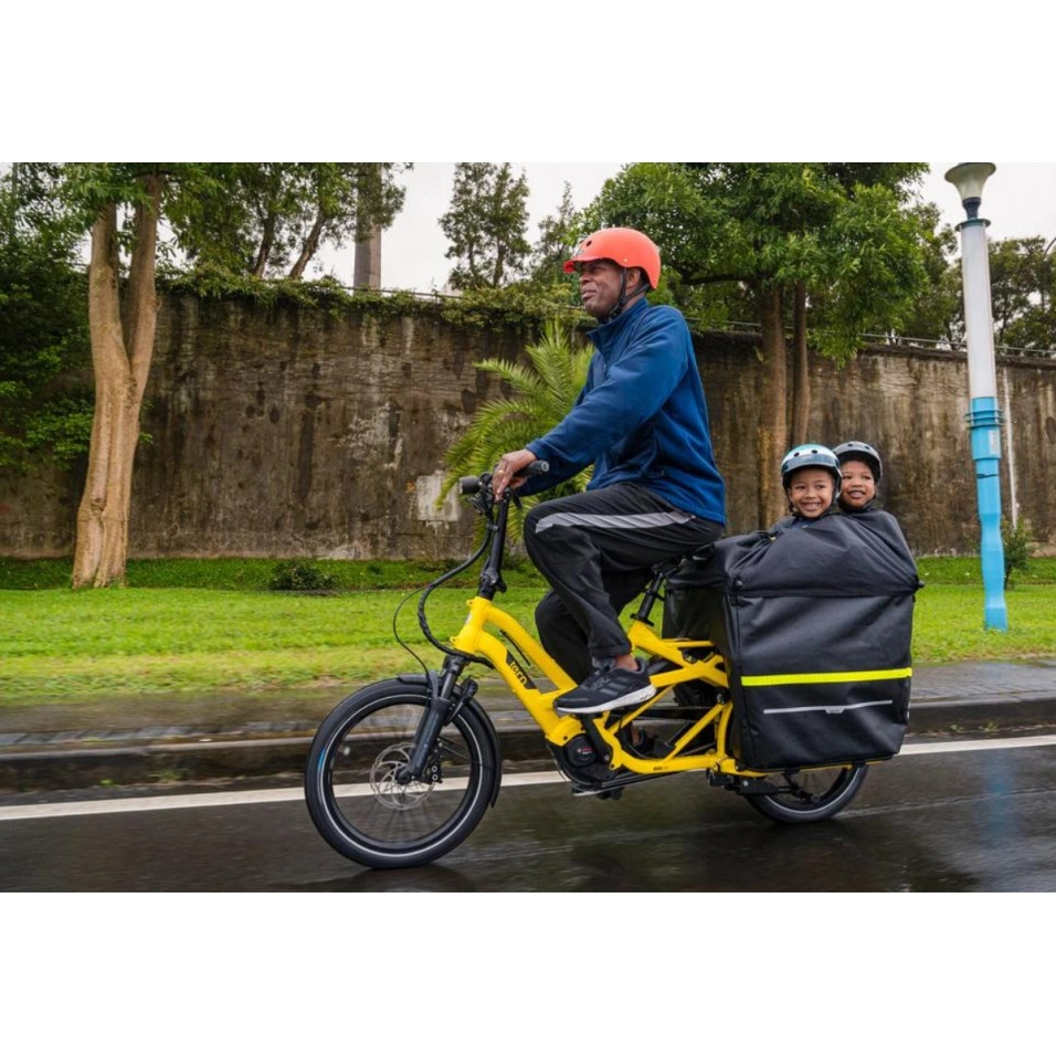 Cuando se combina con el Clubhouse + ™ y Sidekick ™ Wide Decks, la Alforjas Tern Storm Box 160 transforma la parte trasera de la GSD en un enorme cubo protegido contra los elementos. Dos tapas resistentes a la intemperie le permiten cambiar fácilmente entre transportar niños y transportar carga. La tapa de carga resistente al agua y con cerradura protege tus cosas de la lluvia y las miradas indiscretas, mientras que la tapa para niños se ajusta para mantener a los pequeños calientes y cómodos, incluso en días de mal tiempo.
