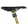 La sección trasera ancha y plana y el retenedor de correa estriado mejoran la estabilidad en terrenos irregulares y el adaptador de alforja con tija telescópica es compatible con cualquier bolsa que use una correa de tija de sillín de 25 mm (o más pequeña).