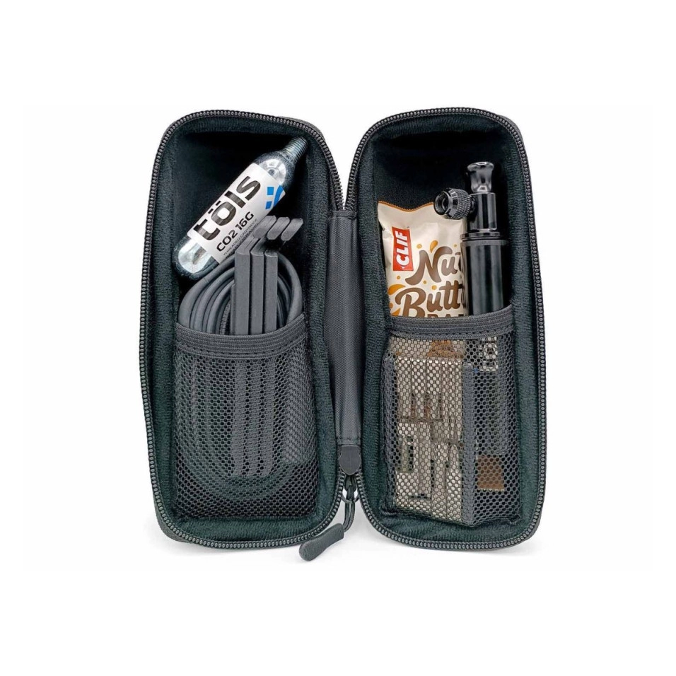 Características: Modelo: Storage Bottle II. Marca: Tols. Tipo: Bolsa con forma de bidón para bicicleta. Material: Principalmente fabricada en poliéster resistente al agua para proteger el contenido de la lluvia ligera y las salpicaduras. Diseño: Forma cilíndrica que se ajusta a la mayoría de los portabidones estándar de bicicleta. Capacidad: Aproximadamente 0.7 litros, ofreciendo espacio suficiente para guardar herramientas pequeñas, repuestos, una cámara de aire, llaves, dinero, o un teléfono pequeño. Cierre: Tapa superior con cremallera para un acceso fácil y seguro al contenido. Compartimentos Internos: Puede incluir uno o más compartimentos internos o una correa elástica para organizar y evitar que los objetos se muevan demasiado. Base Reforzada: La base suele ser más rígida para proporcionar estructura y proteger el contenido de golpes y vibraciones. Asa de Transporte: Algunos modelos pueden incluir una pequeña asa en la parte superior para facilitar su transporte fuera de la bicicleta. Elementos Reflectantes: Puede incorporar pequeños detalles reflectantes para mejorar la visibilidad en condiciones de poca luz. Peso: Ligero para no añadir peso significativo a la bicicleta. Dimensiones: Diseñada para encajar en portabidones estándar (aproximadamente 74 mm de diámetro). |