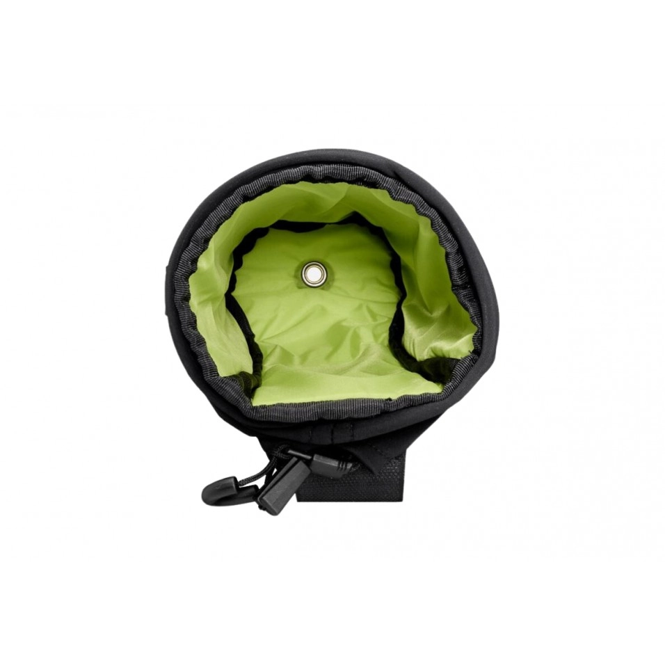 Características. Parte superior elástica en cuatro direcciones con correa de cierre y liberación con una sola mano / Dos bolsillos laterales de malla para mayor almacenamiento Cinta Molle para sujetar objetos en la parte trasera / Marcadores laterales negros reflectantes y protección acolchada en el panel interior Forro de alta visibilidad para facilitar la recogida de objetos pequeños / Correa de horquilla opcional incluida / 80g con correas |