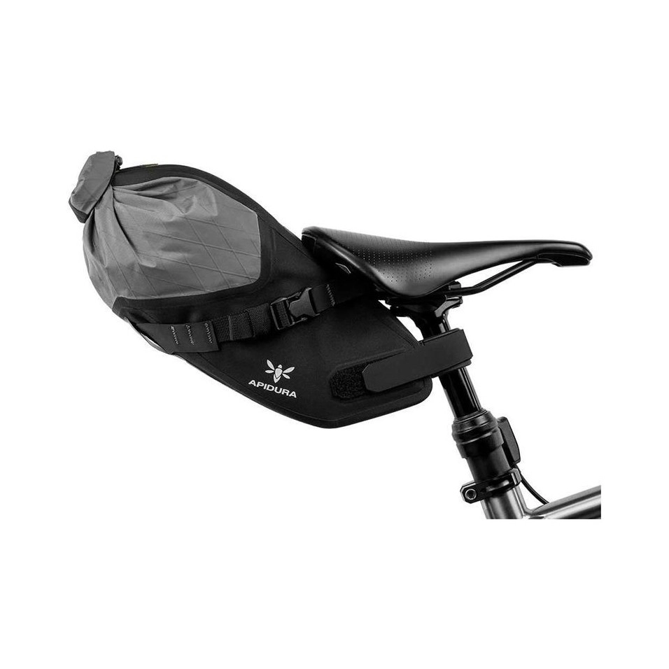 La Bolsa Síllin Apidura Backcountry 4 5L es esencial para los viajes en bicicleta por la naturaleza y para llevar capas para los paseos de todo el día. Diseñado para sostener equipo ligero y comprimible en paseos fuera de la carretera, estas alforjas para bicicleta de montaña brindan un compartimiento espacioso debajo del sillín, eliminando la necesidad de un portabultos trasero. El sistema de sujeción de tres puntos y el adaptador de poste ajustable garantizan un ajuste seguro y libre de balanceo y compatibilidad con el poste ajustable. Los tejidos impermeables ofrecen una resistencia incomparable a la abrasión y los desgarros, y también son fáciles de empacar. Hay un cordón elástico para la ropa de repuesto, mientras que los gráficos reflectantes y el punto de conexión de luz significan que no hay necesidad de comprometer la seguridad. La bolsa de sillín está disponible en dos tamaños para viajes más largos y aventuras de varios días, y ambos están optimizados para bicicletas con espacio limitado. Además, el sistema de compresión y cierre enrollable significa que el volumen de la alforja se puede adaptar con precisión para adaptarse a una variedad de necesidades de embalaje. Esta bolsa es compatible con los postes con cuentagotas cuando se usa con un adaptador de poste con cuentagotas como el nuestro o el Wolf Tooth Valais. Características: ·Paneles resistentes a la abrasión para protección. ·Compatible con postes cuentagotas cuando se usa un adaptador. ·Cierre enrollable para capacidad ajustable. ·Estructura reforzada para una mayor estabilidad de conducción. ·Gráficos reflectantes y punto de conexión de luz para una mayor visibilidad. ·Dimension·Polyant VX21 e Hypalon resistentes para todo tipo de clima.