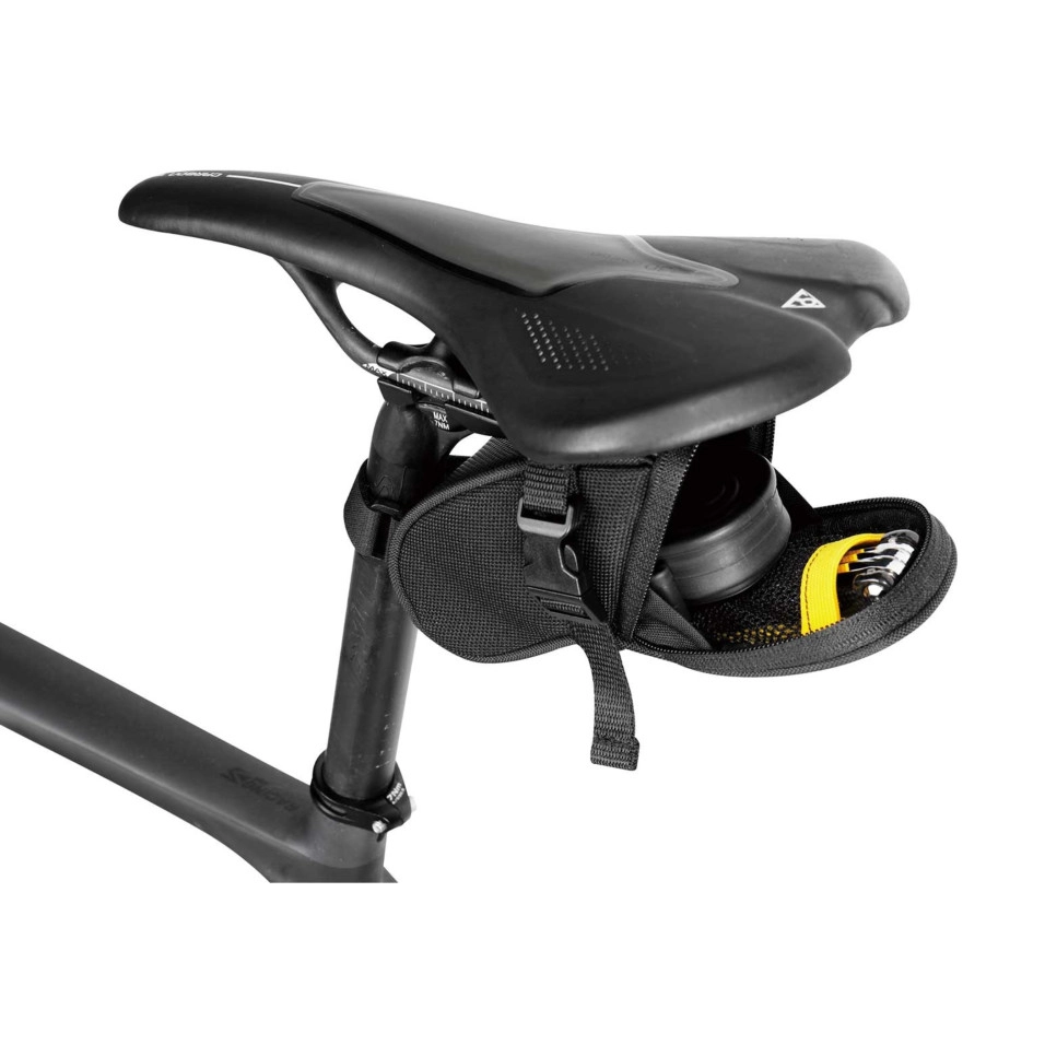 La Bolsa Sillin Topeak Aero Wedge Pack Micro (Strap) que te presenta Escapa tiene un diseño específico para sillines deportivos. Se engancha al sillín mediante correas, lo que la hace compatible con prácticamente cualquier modelo.
