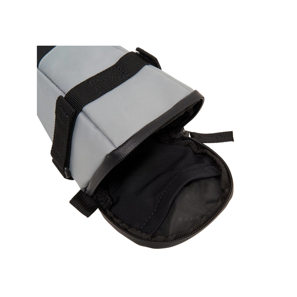 Características: - Material resistente al agua fabricado con botellas de PET - Cierre de cremallera impermeable - Forma ergonómica cónica que proporciona un amplio almacenamiento bajo el sillín de la bicicleta - Bolsillos interiores de malla elástica para organización - Logotipo de la elipse reflectante - Sistema mejorado de correas de nylon y velcro para sujetar firmemente la bolsa a la bicicleta y evitar que se mueva durante la conducción Especificaciones: - 1L de capacidad de almacenamiento Composición del material: - 100% poliéster reciclado |