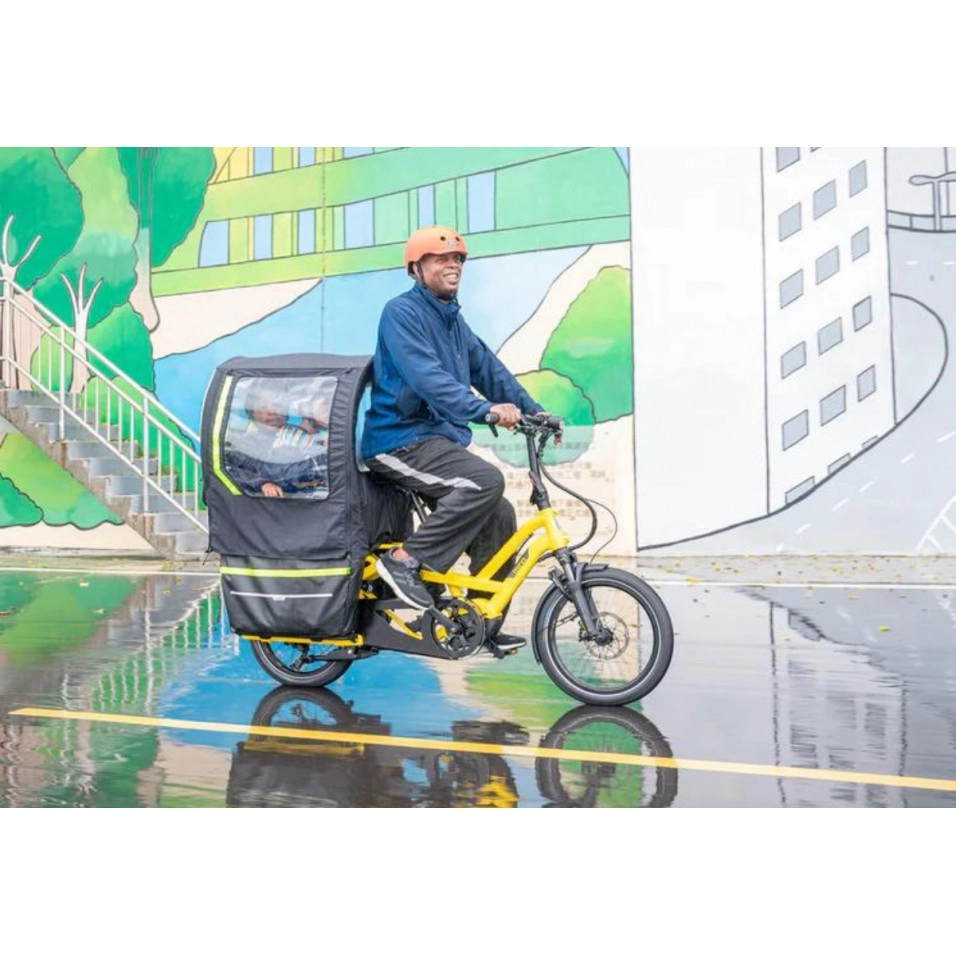 Protege a los pasajeros jóvenes de los elementos, hace que cada día sea un gran día para viajar Lleva hasta dos niños, dentro o fuera de los asientos infantiles Se adapta a niños de hasta 140 cm de altura (mas espacio para cascos) El material de nylon impermeable mantiene a los niños secos, mientras que el panel de ventilación los mantiene cómodos y aireados Enrolle los paneles laterales en días cálidos y soleados Diseñado para resistir el viento Tiras reflectantes para una conducción más segura Combínelo con el Storm Box ™ (no incluido) para una mayor protección contra la intemperie Requiere Clubhouse+ en GSD Gen 2 Requiere Clubhouse en el GSD Gen 1