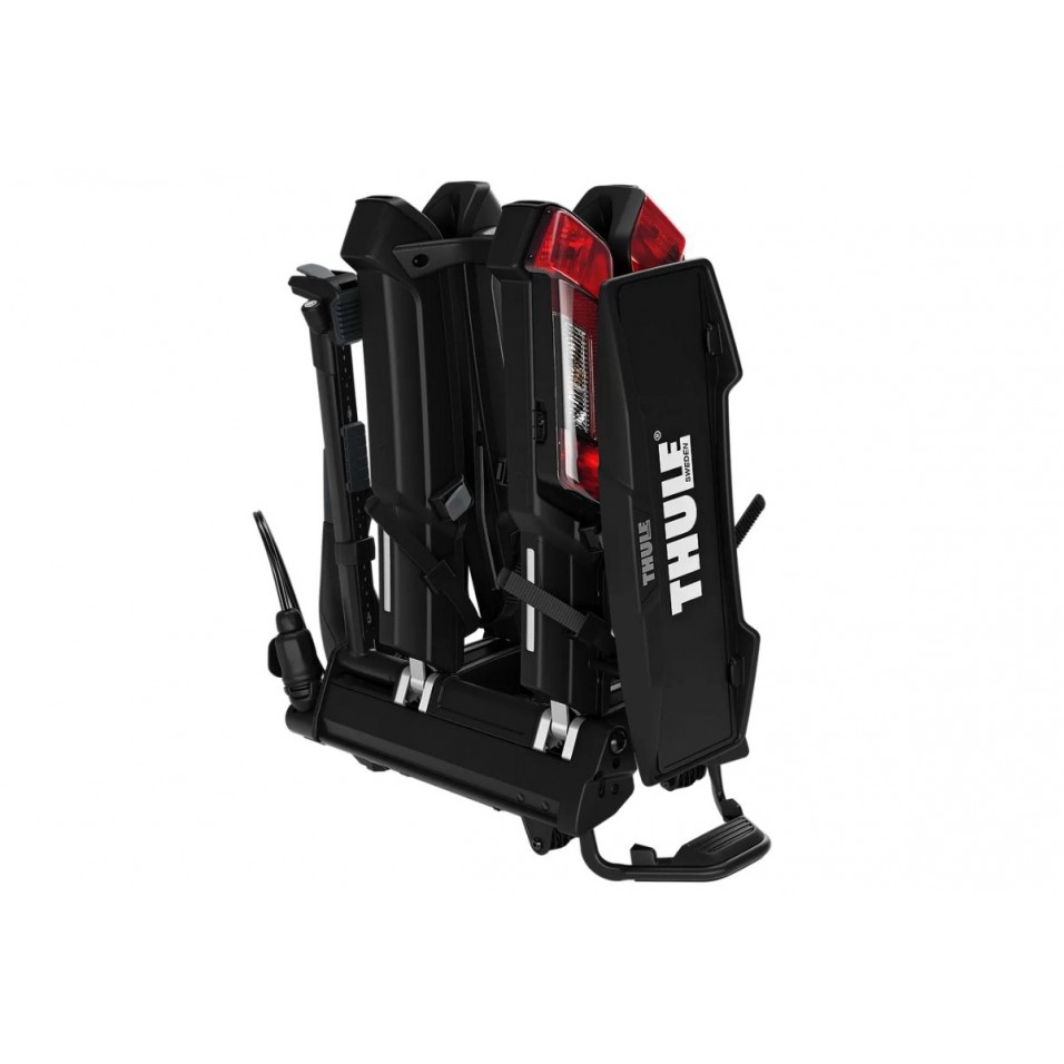 El portabicicletas más versátil para cualquier tipo de bicicleta En el portabicicletas Thule Epos se puede llevar todo tipo de bicicletas y es rápido, sencillo y cómodo de usar. Las bicicletas se montan con el mínimo esfuerzo, gracias a un innovador sistema de montaje telescópico. Con los brazos para bicicletas puedes conectar la bicicleta en cualquier lugar del cuadro o de la rueda trasera, con lo que dispones de diversas opciones de fijación. Puedes cargar y descargar hasta dos bicicletas en cualquier orden, con todo tipo de cuadros y geometrías, incluidas bicicletas eléctricas, de montaña, de grava y bicicletas con guardabarros y soportes. Thule Epos se ha diseñado para maximizar tu tiempo con la bicicleta, gracias a soluciones inteligentes que hacen que el manejo de la bicicleta sea sencillo. Es totalmente plegable para facilitar su transporte y almacenamiento y se puede inclinar para poder acceder al maletero. El portabicicletas se ha diseñado para cuidar de tus bicicletas, con un hueco amplio entre las bicicletas, espacio para grandes distancias entre ejes y fácil fijación de grandes neumáticos, para que puedas disfrutar de tu tiempo practicando ciclismo. Hemos diseñado accesorios excelentes para ciclistas que adoran sus bicicletas. Ajusta o repara tu bicicleta sobre la marcha con el soporte de reparación Thule Epos y protege tus bicicletas de robos con Thule High Grade Lock, desarrollado con el líder del sector ABUS. Y sí, lo sabemos: las bicicletas eléctricas pesan mucho. Por ello te ofrecemos la rampa de carga plegable Thule Epos, con la que cargar y descargar fácilmente tus bicicletas más pesadas. Compatible con todo tipo de bicicletas y bicicletas eléctricas Carga y descarga rápida y sencilla de todo tipo de bicicletas y bicicletas eléctricas. Los brazos de bicicleta telescópicos patentados con plataforma pivotante y correas reforzadas de acero se fijan al cuadro de la bicicleta o a la rueda trasera. Alta capacidad de carga La alta capacidad de carga de 30 kg/bicicleta permite transportar bicicletas eléctricas pesadas Amplio espacio entre bicicletas La amplia distancia de 25 cm entre bicicletas reduce el riesgo de contacto entre ellas Diseño totalmente plegable Totalmente plegable para una instalación, un manejo y un almacenamiento cómodos Acceso sencillo al maletero Se puede acceder al maletero con las bicicletas montadas con inclinación mediante un pedal inteligente. Sin las bicicletas, se puede acceder al maletero sin la inclinación. Detalles