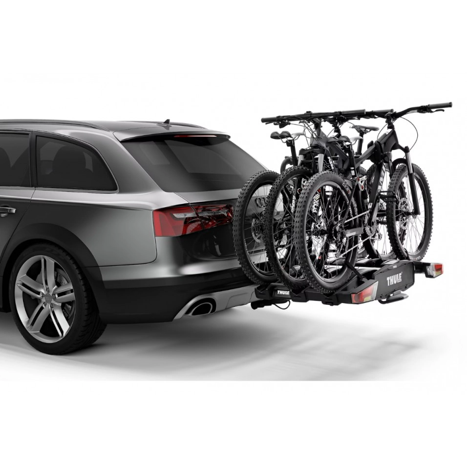 El Portabicicletas Thule EasyFold XT 3 Bicis 13Pins es un portabicicletas para bola de remolque totalmente plegable, compacto y fácil de usar, para todo tipo de bicicletas.