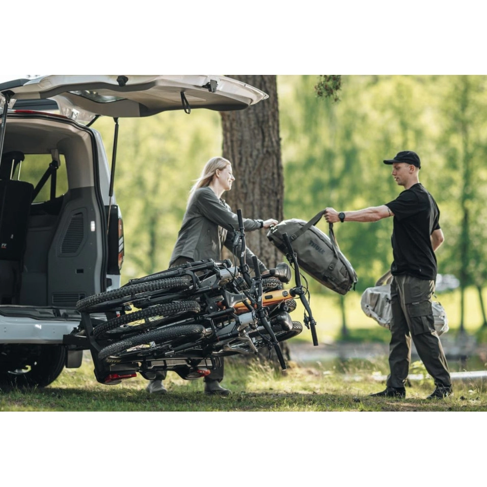 Hecho sobre un rendimiento probado y mejorado en cada detalle Thule VeloSpace 3 es un portabicicletas para bola de remolque de gran capacidad y rendimiento fiable que viene con actualizaciones de diseño inteligentes. Puede llevar bicicletas de casi cualquier tipo, incluidas bicicletas eléctricas más pesadas y bicicletas infantiles, lo que lo convierte en una opción flexible para estilos de vida activos, viajes familiares o paseos diarios. El sistema de brazo de bicicleta cuenta con brazos independientes con cabezal giratorio y sujeción de correa, asegurando un ajuste fiable para una amplia gama de tamaños y geometrías de cuadro, incluyendo cuadros de carbono. Thule VeloSpace 3 admite distancias entre ejes de hasta 1350 mm y pesos individuales de bicicleta de hasta 30 kg. La plataforma robusta y la construcción cuidadosa mantienen las bicicletas estables en la carretera. La versión para 3 bicicletas ofrece una función de inclinación inteligente que proporciona fácil acceso al maletero. El ángulo de inclinación se puede cambiar de 50 a 65° para acceder al área trasera en furgonetas compactas. A pesar de su amplia capacidad, Thule VeloSpace 3 es compacto y fácil de usar. Características como la gestión de correas, el montaje sin herramientas y un marco en U plegable lo hacen fácil de usar, almacenar y manejar todos los días. Características principales Carga fácil de bicicletas Brazos de bicicleta operados con una mano, con correa para facilitar la carga y descarga de todo tipo de bicicletas Acceso al maletero Acceso fácil al maletero con o sin bicicletas cargadas gracias a la inteligente inclinación por pedal Añade una bici Llévate más bicicletas con un adaptador que es fácil de usar Fácil montaje en bola de remolque Montaje y ajuste fácil del portabicicletas antes de cerrar el mango de apriete, gracias a la estabilidad inicial del acoplamiento de la bola de remolque Listo para bicicletas pesadas y largas Admite distancias entre ejes de hasta 1350 mm y bicicletas de hasta 30 kg, ideal para bicicletas eléctricas, bicicletas de montaña y demás DETALLES - Máx. número de bicicletas: 3 - Distancia entre bicicletas: 19 cm - Conector de alimentación: 13-pin - Compatible con el sistema One Key - Bloquea el portabicicletas al automóvil - Función inclinable (con bicicletas) - Luces traseras - Compatible con cuadros de carbono |