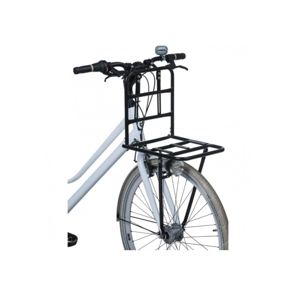 Escapa trae el Portabultos Delantero Basil c/Fijacion Luz + 2 Enganches Ra, aumenta la capacidad de carga de tu bicicleta. Robusto y versátil, facilita el transporte de objetos y mejora la seguridad con su soporte para luz. Ideal para desplazamientos urbanos y aventuras en bicicleta.