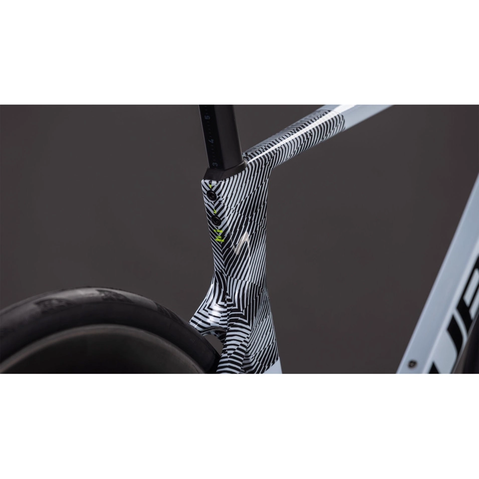 La bicicleta perfecta es la que se adapta a ti a la perfección. Con la Bicicleta Cube Agree C:62 Race 2026, su manillar integrado y su cableado interno Advanced, la Agree C:62 parte con ventaja en rapidez. Si a ello le añadimos tubos perfilados con la máxima atención y pulidos por nuestra experiencia en la construcción de bicicletas de contrarreloj y de competición que siempre se suben al pódium, estamos literalmente ante una ganadora. La cuidada estructura de carbono y los finos tirantes garantizan la comodidad incluso en las salidas más largas, y los 32 mm de espacio libre del cuadro ofrecen espacio suficiente para cubiertas más anchas y rápidas. Ah, y también incluimos una caja de almacenamiento montada en el cuadro, para que puedas llevarte comida, herramientas o una capa extra. Características: C:62 Carbon Fiber Technology No todo el carbono se fabrica igual. Con nuestro carbono C:62®, aumentamos el contenido de fibra de alto módulo y luego reforzamos el material resultante con nanopartículas incorporadas en la resina adhesiva. Sí, es solo una forma elegante de decir que es extremadamente fuerte, ligera y duradera. Tija de sillín integrada Nuestra abrazadera de tija de sillín integrada es parte de nuestra búsqueda para encontrar los mejores detalles y que tú puedas cosechar las recompensas de nuestras elecciones. Su diseño minimalista se adapta a la sencillez estética del cuadro. Un dato importante porque quieres una bici bonita, ¿verdad? Pero también que pese lo menos posible. El peso también es decisivo. Storage Box Los recorridos rápidos y de larga distancia a veces implican llevar algunos extras contigo: herramientas, geles energéticos o una capa impermeable. Nuestra Storage Box está diseñada para encajar discretamente entre el sillín y los tubos horizontales, y tiene capacidad suficiente para todos estos elementos esenciales. De hecho, es todo un punto a favor porque mejora la ya excelente aerodinámica de nuestras Axial y Agree. Full Internal Cable Routing La colocación completamente interna de los cables pone orden en el cableado externo y lo convierte en cosa del pasado. Hemos comenzado desde cero diseñando el cuadro y el manillar de manera que protejan internamente los cables de cambios y frenos, y que nada interrumpa las líneas limpias de la bicicleta. Es más elegante y más aerodinámico, evita que los cables se dañen y reduce el mantenimiento. Todo son ventajas. Conforme a la UCI Si quieres competir, hay reglas. Lo sabemos y, por eso, todas nuestras bicicletas de carretera aptas para carreras cumplen totalmente las normas de la UCI sobre diseño y construcción de bicicletas. Hemos creado una gama completa de máquinas de alto rendimiento que siguen las reglas, para que tú puedas concentrarte en tu propio rendimiento… One-Piece Carbon Cockpit Cuando cada fracción de segundo cuenta, el peso importa. He aquí la razón por la cual nuestro puesto de mando de carbono de una sola pieza ha sido cuidadosamente diseñado para imitar la gama de posiciones de conducción posibles con una combinación de potencia y manillar tradicional, pero con un ahorro de peso sustancial. Ligero, fuerte y elegante, es otra forma de hacer que cada vatio sea trascendental. Soporte GPS Sabemos que quieres llevar un control de la evolución de tu rendimiento. Por eso hemos diseñado un soporte elegante y discreto para tu Garmin. Ahora puedes registrar y acceder a tus datos dondequiera que vayas, con la seguridad de que tu unidad GPS está instalada de forma segura y no corre riesgos. Advanced Twin Mold Con nuestro proceso Advanced Twin Mold, utilizamos dos formas fabricadas con precisión para nuestros cuadros de carbono C:62®, C:68® y C:68X®. La primera forma asegura una disposición precisa. La segunda forma interna mantiene cada fibra individual exactamente donde debe estar mientras el cuadro se endurece. El resultado es un cuadro mucho más ligero y fuerte, con una densidad de fibra adaptada a las cargas previstas en puntos específicos. |