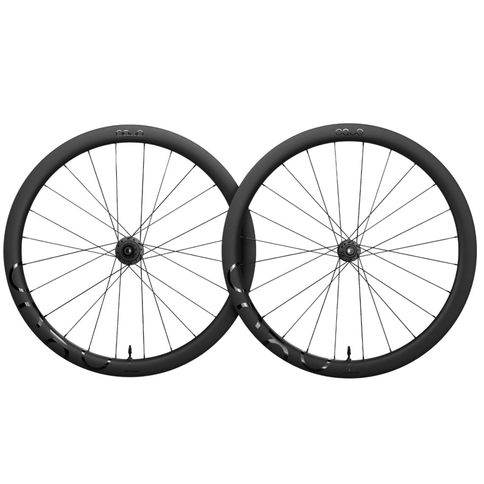 | Ruedas Oquo Road Performance RP45TEAM, carbon Mini Hook rim, 45mm profile, Zipp ZR1 hub, 21mm internal width, Sapim CX-Sprint spokes, 700C |