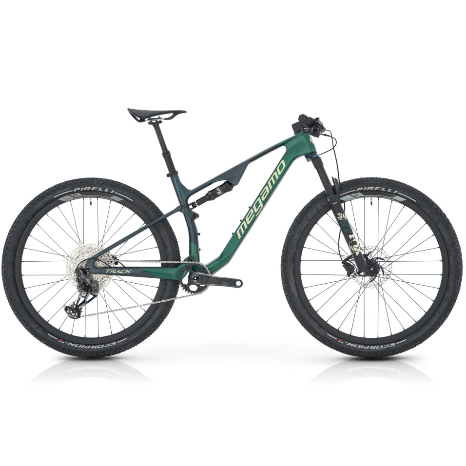 CARACTERÍSTICAS PRINCIPALES · Cuadro Track Full Carbon Construction FSC Technology BB92 Carbon Swingarm Boost 12x148mm · Horquilla Fox 34 120mm StepCast Performance · Amortiguador Fox DPS Performance Elite, 120mm Travel 190x45, 3 positions Remote Lockout control · Transmisión Sram GX Eagle 12-speed · Ruedas DT Swiss X 1900 · Frenos Shimano XT 8100 · Tija telescopica Fox Transfer SL Performance with internal cable routing · Manillar Integrado Carbono Megamo CABLEADO TOTALMENTE INTERNO El cableado totalmente interno de la nueva Track proporciona una imagen más limpia a la bicicleta. El ruteado es totalmente invisible a la vista, tanto en el triángulo delantero como en el trasero. Un trabajo de desarrollo exhaustivo que ha concluido con un ruteado efectivo para cada elemento: tija telescópica, freno trasero, cambios traseros… El hecho de que en la pipa de dirección no tenga los agujeros de entrada de cables convencionales nos proporciona mucha más rigidez en esta zona. SISTEMA DE SUSPENSIÓN, DISEÑO Y CINEMÁTICA El sistema de mono-pivote (suspensión de 4Bar con basculante flexible) es capaz de proporcionar las mejores sensaciones a los competidores más exigentes y a los que buscan experimentar nuevas sensaciones sobre su bicicleta. Y es que, en bicicletas MTB ligeras, esta solución es la que mejor se antoja. El hecho de tener el amortiguador debajo el toptube nos da como resultado un diseño distinto, evolucionando la anterior generación. Algo similar ocurre con el sistema de suspensión y sus características cinemáticas. ahora el comportamiento es progresivo, acorde con las tendencias actuales. Solo hay que ver los circuitos de la copa del mundo de XCO para darse cuenta de que las bajadas son más técnicas y los obstáculos mayores. Además, el comportamiento progresivo cumple el objetivo de hacer la bicicleta definitiva. BLOQUEO REMOTO EN 3 POSICIONES El control remoto desde la maneta del sistema de suspensión nos hace los más eficientes o rápidos en todas las situaciones. El equipo de competición han sido partícipe del desarrollo de este logro. Ya sea para conseguir las arrancadas más explosivas (LOCKOUT) como la tracción perfecta en los senderos más técnicos (PERFORMANCE), así como aprovechar toda la capacidad de absorción y control de rebote en los descensos más salvajes (FLOW). GEOMETRÍA ADAPTADA SEGÚN LA TALLA Cada rider necesita una bici adaptada a sus necesidades, hay que tener en cuenta que cada zona del cuadro puede tener exigencias distintas según la talla. Por este motivo se ha trabajado para lograr la combinación perfecta entre rigidez/peso, adecuada a cada usuario según sus medidas. |