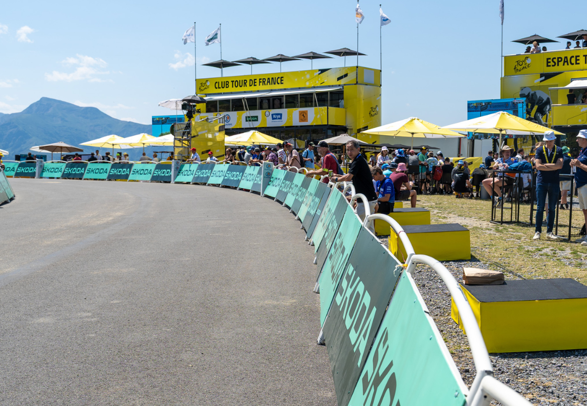 Una vez en la cima, tuve la suerte de acceder a la zona VIP del Tour, situada a solo 500 metros de la meta. Allí, a 1.520 metros de altitud, disfruté de una ducha revitalizante antes de ver la etapa en un entorno privilegiado.
