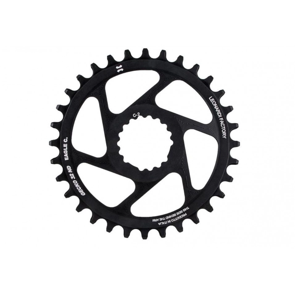 El Plato Leonardi Gecko Capo Hollowgram FSI C2 permite una configuración óptima para unidades de una sola velocidad o 1x10/11 y 1x12 (SRAM Eagle). Estos platos se atornillan directamente al brazo de la biela y, por lo tanto, ahorran mucho peso en comparación con las combinaciones convencionales de plato y araña y también son significativamente más resistentes a la torsión.