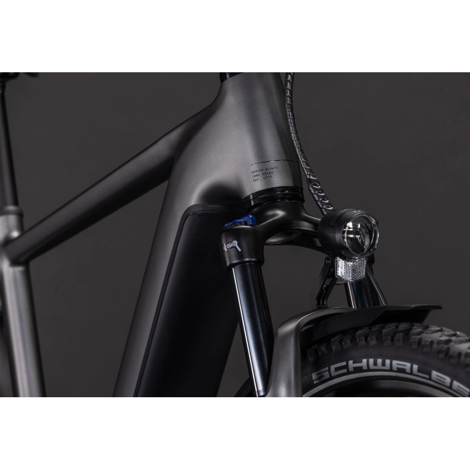 EXPAND YOUR HORIZONS El potente motor Bosch Performance de la Nuride Hybrid Performance con Bosch Smart System y la batería PowerTube de 600 Wh están tan perfectamente integrados en el clásico cuadro que apenas notarás que están allí… si no fuera por la ayuda que suponen en los pedales, claro está. Pero la cosa no acaba aquí. La geometría Efficient Comfort y una horquilla de suspensión añaden comodidad y control al pack, incluso en carreteras irregulares. Además, con las luces, la pata de cabra y los guardabarros de longitud completa incluidos, tendrás todo listo para cualquier viaje, en cualquier momento y en cualquier lugar. Aspectos destacados ¿A quién no le gustaría vivir aventuras en su vida? Con su robusta funcionalidad y los accesorios incluidos, la Nuride Hybrid Performance 600 pone a disposición el placer de viajar sobre dos ruedas a casi todo el mundo. Dispone de horquilla de suspensión y anchas cubiertas Schwalbe de gran agarre para un rodaje cómodo, incluso en carreteras y pistas irregulares. Los potentes frenos de disco hidráulicos Shimano garantizan una frenada segura, haga el tiempo que haga. Hemos incluido todos los accesorios que puedas necesitar, como un portabultos, guardabarros, luces y pata de cabra, porque nunca se sabe lo que puede pasar mañana. Y la guinda del pastel, por supuesto, es el potente motor Bosch Performance con batería de 600 Wh y el cambio Shimano Cues de 10 velocidades, fácil de usar, para ayudarte a acelerar en tu camino. Fully Integrated Battery El sistema Fully Integrated Battery oculta la potencia de la batería de Bosch para que esté protegida dentro de los límites del tubo diagonal de la bicicleta. Oculto bajo de una cubierta que protege del polvo y las salpicaduras, y con cierre de candado para evitar robos, nos permite diseñar cuadros de bicicletas eléctricas tan bonitos como funcionales. Advanced Internal Cable Routing Los cables de las marchas y los frenos necesitan comunicar los mandos del manillar con el cuadro, pero ¿es necesario hacer agujeros cerca del tubo de dirección para conseguirlo? Se nos ocurrió un diseño que lleva los cables al cuadro a través de la dirección manteniendo la colocación completamente interna de los cables pero poniendo un poco más de orden y logrando que resulten menos molestos. Modular Battery System La batería es, en muchos sentidos, el corazón de una bicicleta eléctrica. Por eso, con nuestro sistema de batería modular, hemos creado una configuración fácil de usar. Puedes cargar la batería cuando está instalada en la bicicleta o aparte, y hemos dejado espacio para baterías de alta capacidad. Te preguntarás cómo te las has arreglado hasta ahora sin ella. Efficient Comfort Geometry Con nuestra geometría Efficient Comfort especialmente diseñada, ir en bicicleta es puro placer. Tanto si estás atravesando la ciudad de un lado a otro como si te has lanzado a explorar más allá, estás dando un paseo en familia o con los amigos, yendo al trabajo o simplemente disfrutando de tu tiempo libre, hemos creado una experiencia sobre dos ruedas que te hará volver a por más. Aluminium Superlite El aluminio Superlite de CUBE toma como punto de partida el aluminio 6061 tratado térmicamente, porque posee las cualidades (alta resistencia a la fatiga, buena rigidez, bajo peso y excelente resistencia) esenciales de un cuadro de bicicleta. En una segunda fase, transformamos el material en tubos de doble conificado, para reducir el peso sin sacrificar ni un poquito su fuerza. ¿El resultado? Cuadros excepcionalmente ligeros, fuertes y resistentes. X-Connect X-Connect es una forma sencilla de acoplar una luz ACID compatible a tu bicicleta CUBE. Con un conector integrado en la dirección y los cables ocultos en el cuadro, solo falta acoplar la luz, enchufarla… y emprender el camino. Ve y que te vean, con total comodidad. |