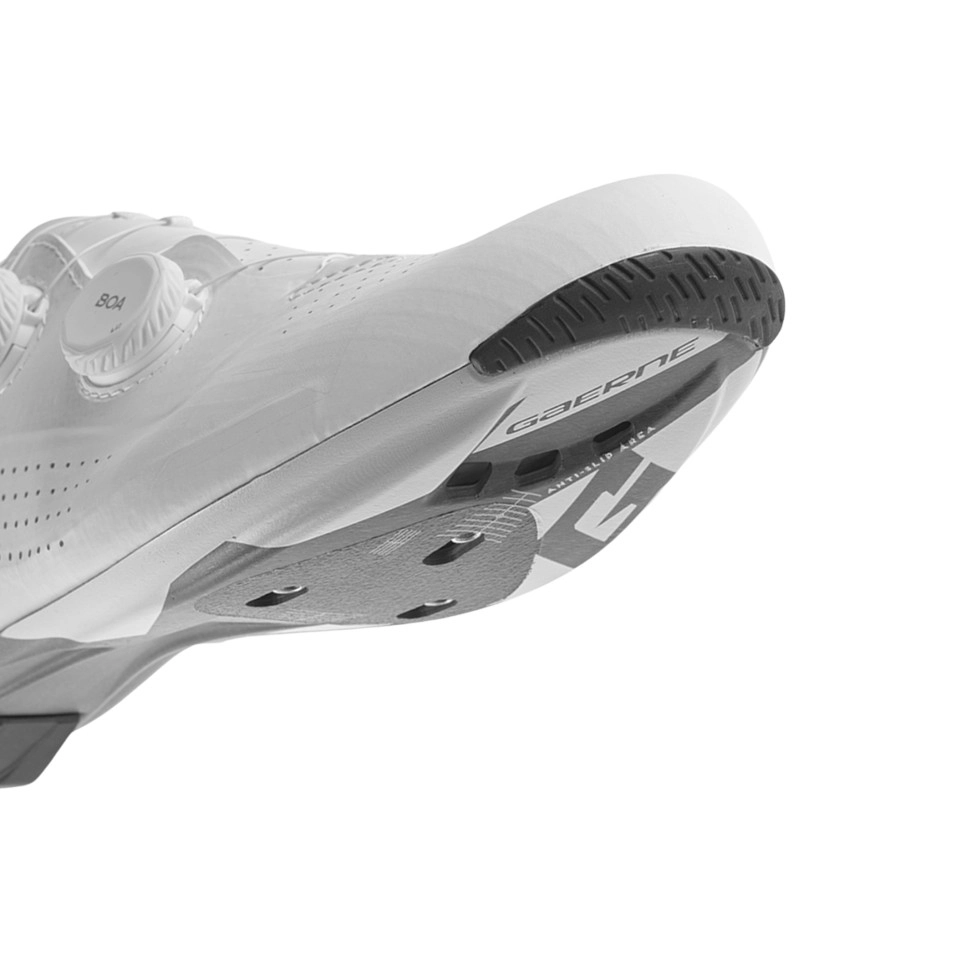 Gaerne ha desarrollado una gama de ajustes diseñados para adaptarse con precisión a la anatomía del pie, el estilo de pedaleo y las necesidades de cada ciclista. Esta zapatilla incorpora el G.PRO FIT WIDE , que conserva el mismo rendimiento y precisión de competición del G.PRO Fit, a la vez que ofrece mayor volumen en la zona del antepié para una mayor comodidad y libertad de movimiento. La parte superior incorpora G.Frametex , un material innovador desarrollado por Gaerne que proporciona mayor estabilidad al pie y mejora la ligereza de la zapatilla. Las perforaciones láser estratégicamente ubicadas garantizan una excelente ventilación, manteniendo los pies frescos y secos durante todo el recorrido. DETALLES - El SISTEMA DE CIERRE INFIT 1.0, presenta ajustes por zonas diferenciadas, con un diseño asimétrico controlado por dos diales BOA® Li2, que proporcionan mayor estabilidad durante el pedaleo, un ajuste preciso, una transferencia de potencia optimizada y minimizan los puntos de presión. - Las plataformas BOA® Li2 DIAL F, presentan un diseño elegante y de perfil bajo. El acabado engomado garantiza un agarre y un control superiores, mientras que el dial Li2 se ajusta al girar hacia afuera y se afloja al girar en sentido contrario, lo que permite ajustes precisos y sin esfuerzo. - La LENGÜETA COMFORT FIT 1.0, presenta una construcción sin costuras con grosor variable e incorpora una capa de amortiguación de alta tecnología para mayor comodidad y transpirabilidad. - La TALONERAS ANTIDESLIZANTES INTEGRADAS 1.0, mejora la estabilidad y el control del pie, reduciendo los movimientos no deseados gracias a su tratamiento interno antideslizante. Esto se traduce en un soporte superior y una mejor transferencia de potencia. -Suela ligera de carbono GAERNE EPS 12.0, es una suela ultraligera y ultrafina, diseñada con un tejido optimizado de fibra de carbono para garantizar que cada vatio de potencia se transfiera a los pedales. La forma de la suela mejora la estabilidad del pie en la zona del arco plantar, mientras que cuatro ventilaciones proporcionan una excelente ventilación en el interior de la zapatilla. Una puntera antideslizante y una almohadilla trasera intercambiable mejoran la durabilidad y la funcionalidad |