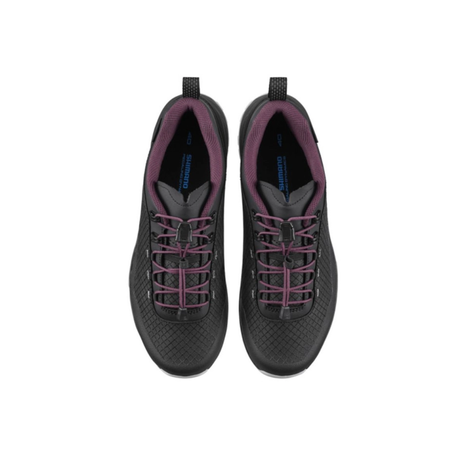 ・CARACTERÍSTICAS »Seguro sistema de cierre de cordones para que puedas realizar ajustes rápidos y fáciles. »El empeine deportivo con panel de malla se ajusta perfectamente y permite que el pie transpire. »Más sostenibles, fabricadas con 19 % de empeine de malla reciclado y de entresuela reciclada (por peso). »Entresuela entrelazada semirrígida que transfiere la potencia al pedal de forma eficiente. »Las ranuras cruzadas adaptables de la suela crean un mejor agarre con distintos tipos de cajas y pasadores de pedal. »Horma específica de touring para mujer para un ajuste más natural y cómodo. »La suela taqueada de tracción de 360° ofrece un mejor agarre en los distintos tipos de pedales y terreno. »El patrón de bloque diseñado para ofrecer tracción en descensos y senderos en el talón y la puntera proporciona un excelente agarre en terreno variable. |