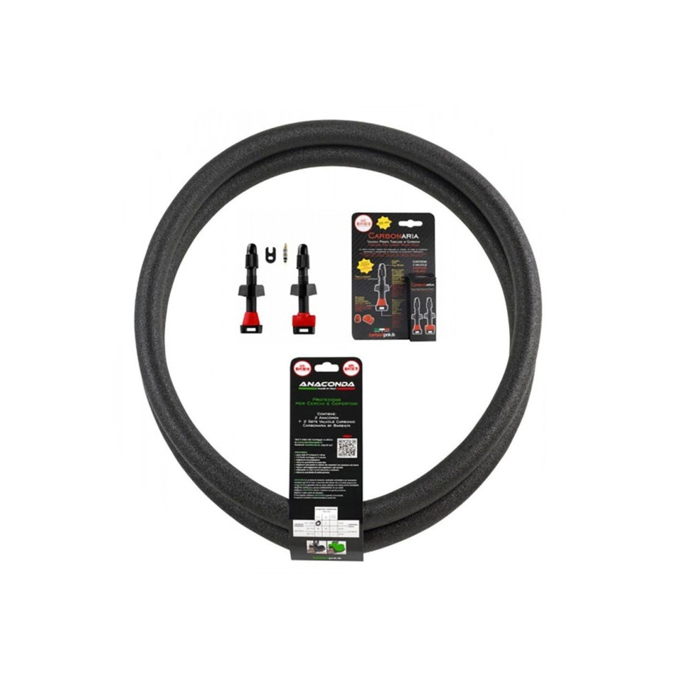 En Escapa tenemos todos los productos de la italiana Barbieri para disfrutar del ciclismo como nunca antes. El Kit Mousse Barbieri Anaconda 3.0 27.5 Valvula Presta 35mm S-M es una espuma protectora para llantas y neumáticos tubeless y tubeless ready, además permite girar con presiones ligeramente más bajas para mejorar más el agarre.