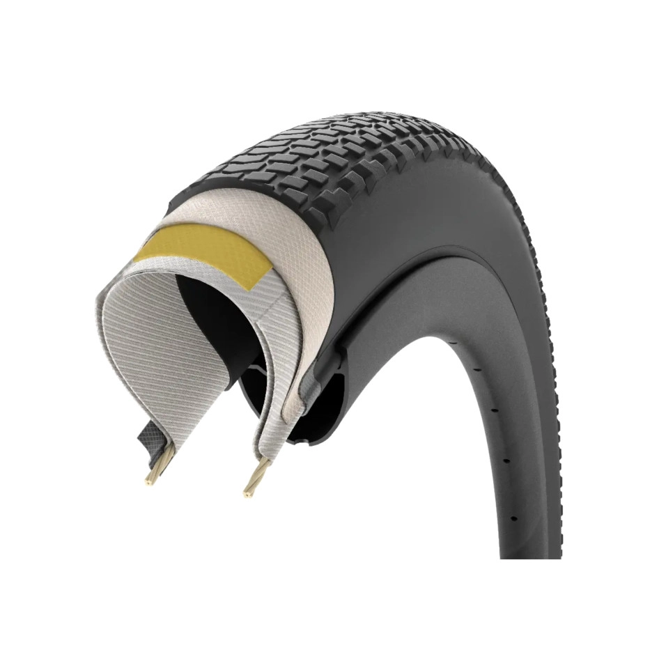 Gracias a su compuesto avanzado, ofrece un rendimiento excelente en condiciones secas y mojadas, con un alto nivel de protección antipinchazos. Compatible con llantas hookless según los estándares más recientes, está disponible en varios tamaños, versiones y colores. Es la cubierta ideal para pistas rápidas de grava y rutas largas con mucho asfalto, perfecta para ciclistas que buscan la máxima fluidez y velocidad en bicicletas Gravel o All-Road. Carcasa ProWALL Gravel La estructura ProWALL Gravel adopta una tecnología derivada directamente de las carcasas de MTB más avanzadas Made in Italy. Construida con una carcasa de 120 TPI, garantiza rodadura fluida y sensibilidad en terrenos irregulares. Los flancos reforzados ofrecen soporte incluso a bajas presiones y una sensación de conducción precisa y estable, con mayor control en rutas gravel exigentes. Su construcción tubeless-ready y la capa protectora adicional aseguran fiabilidad y resistencia a los pinchazos, el equilibrio perfecto entre rendimiento y durabilidad para aventuras largas. Compuesto SmartEVO GR Diseñado para el ciclismo off-road moderno, el nuevo compuesto SmartEVO GR ofrece baja resistencia a la rodadura y un alto nivel de agarre químico tanto en superficies secas como mojadas, garantizando eficiencia y control en terrenos compactos, pistas de grava e incluso asfalto. Pensado para ciclistas que buscan el máximo rendimiento, este compuesto Made in Italy combina velocidad, agarre y versatilidad. |