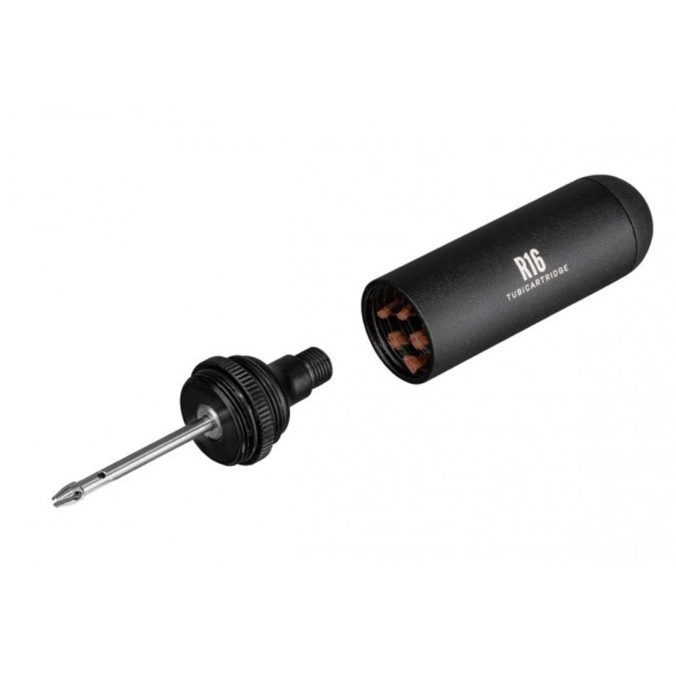 Kit de Reparacion Topeak TubiCartridge R16 para neumáticos sin cámara. Para bicicletas de carretera almacenado de forma compacta en una cápsula estilo cartucho de CO2 que se utiliza solo para reparar neumáticos o, además, con un inflador de CO2 para inflarlos.