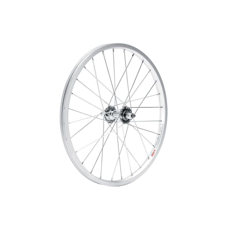 Características: . Llanta de pared simple color plata para V-Brake con 28 radios y altura de 16,1mm. . Rueda delantera de 20 " x 1.75. . Cierre: tuerca eje 9,5 (macizo). |