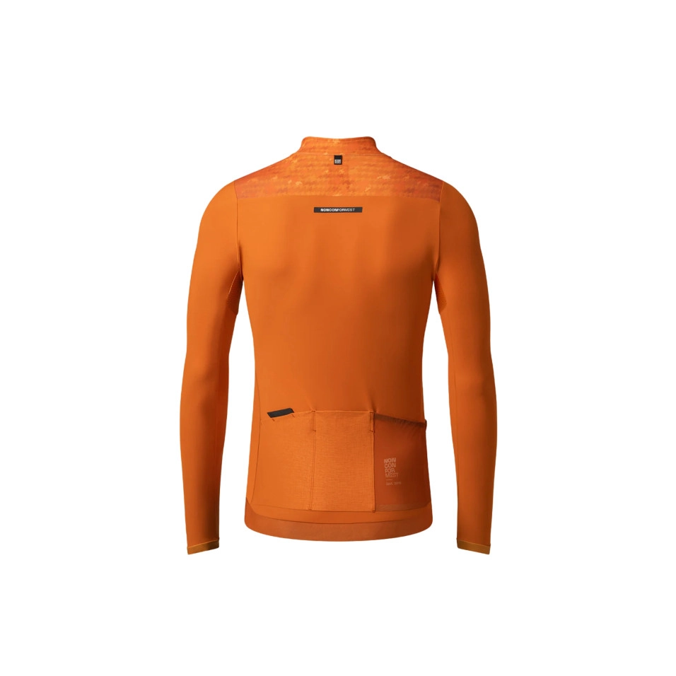 Esta versión actualiza el diseño con un patrón renovado, donde el corte frontal más alto aporta una estética más estilizada. Las mangas, ahora en tejido sólido, junto con las zonas en poliamida, mejoran el ajuste y la estabilidad durante el pedaleo. Su estructura técnica proporciona un aislamiento ligero, ideal para entrenamientos y salidas en días de temperaturas frescas, asegurando a la vez una transpirabilidad óptima que evita el sobrecalentamiento. Los paneles mesh en las axilas añaden una ventilación extra, favoreciendo la evacuación del calor residual y manteniendo una sensación de frescura constante. Gracias a su ajuste preciso, permite la combinación con una capa base cuando las condiciones lo requieran, convirtiéndolo en una prenda versátil para diversas situaciones climáticas. CARACTERÍSTICAS Cuerpo apanelado en tejidos técnicos de poliéster y poliamida. Cálido interior con microfleece. Corte frontal más alto. Tejido tipo melange en parte del frontal. Mangas en tejido sólido de ajuste perfecto. Puños minimalistas con corte láser. Cremallera invertida vista. 3 bolsillos traseros + 1 bolsillo lateral. 2 en con sistema GRS y 2 en tejido de rejilla. Nueva cinta completa siliconada en cintura. Detalles reflectantes en bolsillo y cuello. Temperatura de Uso: 8- 16 ºC Fitting: PERFECT FIT TECNOLOGÍA La parte inferior del maillot utiliza un tejido de poliamida con interior de microfleece, ofreciendo una sensación cálida y confortable. La zona superior está confeccionada con un tejido técnico afelpado de gran elasticidad, mientras que un tercer material tipo melange, ubicado en un panel frontal, aporta un toque estético distintivo. Las mangas, ligeras y elásticas, minimizan la resistencia al viento y se renuevan con un tejido sólido que mejora notablemente la comodidad y el ajuste. Los puños, optimizados anatómicamente, presentan un acabado con corte láser que se adapta perfectamente a la muñeca. Además, se han añadido paneles de malla en las axilas para una ventilación adicional. La cremallera, invertida y visible, aporta un aire dinámico a la prenda. En la parte trasera, se incorporan tres bolsillos: dos de ellos equipados con el innovador sistema patentado GRS (Gobik Retention System), que asegura el contenido con total fiabilidad, y un tercero con tejido de rejilla. A esto se suma un cuarto bolsillo lateral, también de rejilla. La cintura cuenta con una nueva banda de silicona que recorre todo el perímetro, garantizando una sujeción óptima durante la actividad. Por último, se integran elementos reflectantes en la zona de los bolsillos y el cuello para mejorar la visibilidad en condiciones de baja luminosidad. CUIDADO DEL PRODUCTO El uso de mochilas o complementos con asas puede generar fricción y desgaste prematuro en los tejidos, por lo que cualquier daño derivado de ello anulará la garantía. No lavar en seco. Lavar con agua fría, utilizando detergente neutro y sin suavizante. Lavar del revés y con la cremallera completamente cerrada, de lo contrario puede aparecer peeling en ciertos tejidos. Utilizar la bolsa de lavado siempre que sea posible y la mínima carga de ropa en la lavadora. Usar el programa para prendas delicadas o centrifugar a la mínima velocidad posible. Secar la prenda al revés y a la sombra. No dejar la prenda en remojo, ni retorcer para escurrir. No planchar. Detalles que marcan la diferencia Gobik D-Labs trabaja sin descanso para desarrollar las mejores prendas de ciclismo del mercado. Descubre los detalles más avanzados de nuestros productos. Termorregulación Su estructura favorece la retención del calor corporal, creando un entorno interior cálido, seco y confortable. El tejido actúa de forma activa, evacuando el exceso de humedad y evitando la acumulación de sudor, lo que permite conservar una sensación constante de bienestar durante el esfuerzo. El resultado es una regulación inteligente de la temperatura que mejora el rendimiento y la comodidad en cada salida. Microfleece Relleno interior de poliamida afelpada con excelentes cualidades de confort, ligereza y calidez. Proporciona una agradable sensación en contacto con la piel y te mantendrá caliente durante rutas con temperaturas bajas. Paneles Mesh en Axilas Tejido de rejilla ultra transpirable en axilas para facilitar la ventilación del calor residual cuando incrementamos la intensidad. Sistema GRS Los bolsillos traseros cuentan con el sistema de retención patentado GRS (Gobik Retention System), que se encargará de cuidar tus pertenencias más preciadas aportando un extra de seguridad. Bolsillo de Rejilla Lateral Bolsillo extra en la parte lateral de la prenda ideal para guardar productos de nutrición o envoltorios. |