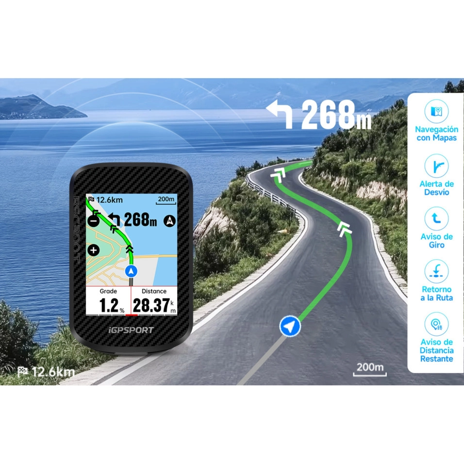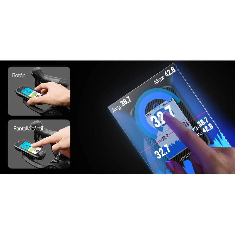 Le GPS IGPSport BSC300T présenté chez Escapa est un modèle ultra-fin, léger et riche en fonctionnalités, doté d'un écran tactile avancé. Il est conçu pour les cyclistes exigeants qui recherchent une navigation professionnelle, une connectivité complète et une expérience visuelle optimale. Grâce à son écran tactile couleur et sa navigation intégrée, ce modèle se distingue comme l'un las meilleurs rapports qualité-prix de sa catégorie.