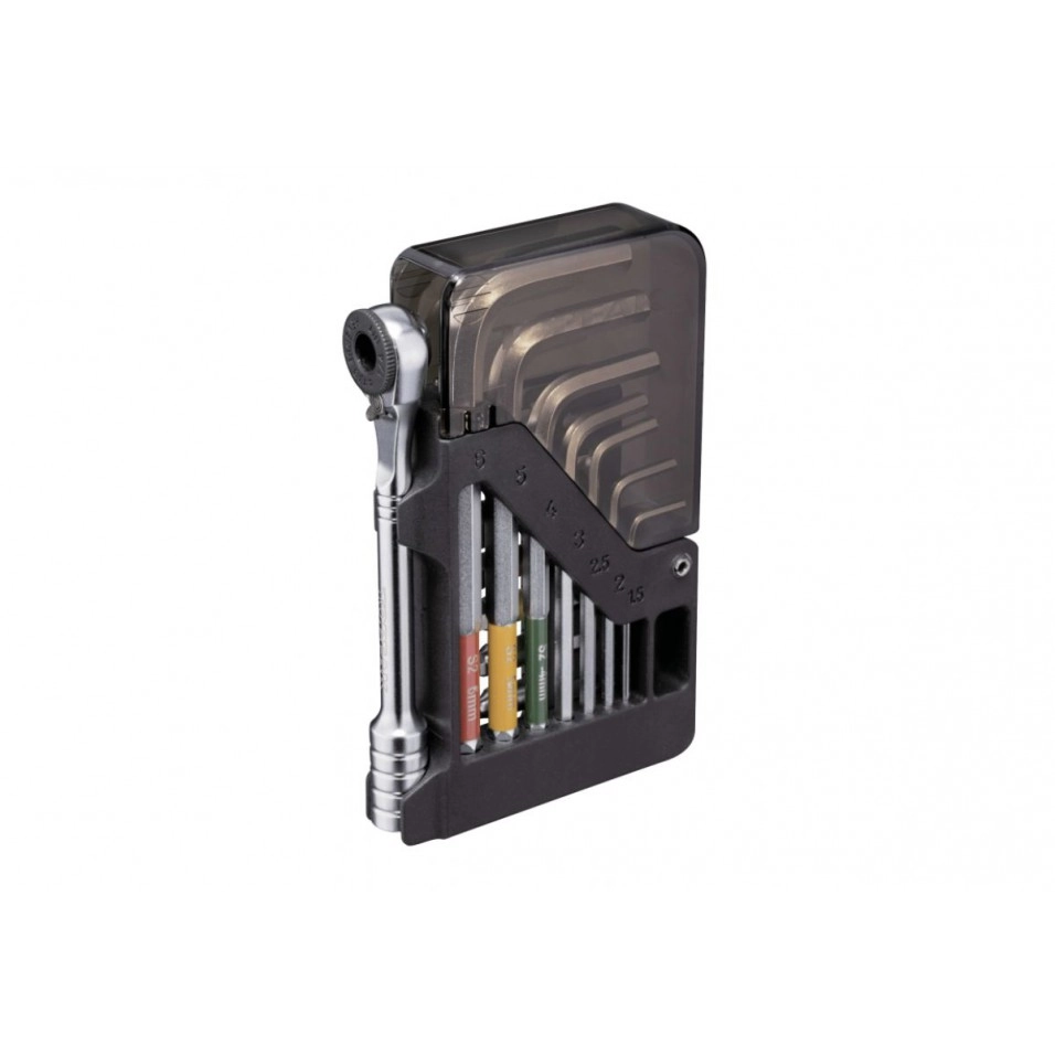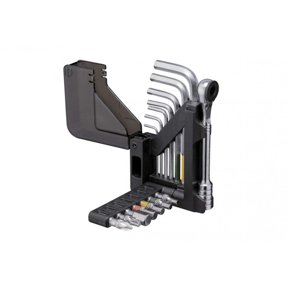 Outil multifonction incroyablement compact à 15 fonctions avec une clé à cliquet et un jeu de clés Allen à bille. 7 embouts à cliquet et 7 clés Allen à bille sont rangés dans un corps pliable innovant et hautement organisé, suffisamment petit pour tenir dans une poche de maillot. Caractéristiques : 15 Outils : Allen 1,5, 2, 2,5, 3, 4, 5, 6 mm (boule) ; Forets Allen : 3, 4, 5, 6, 8 mm ; Torx : T25 ; Tournevis : cruciforme n°2 Matériau de l'outil : acier trempé S2 Matériau du cliquet : acier trempé Matériau de la carte : polymère de qualité technique Taille: 10,1 x 6,3 x 1,7 cm Poids : 185g |