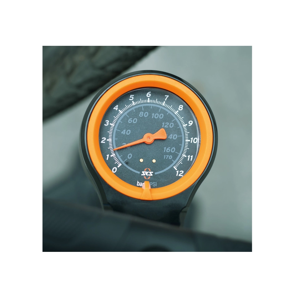 La pompe d'atelier SKS Airmotion 12.0 présentée à Escapa est conçue pour offrir une expérience supérieure, atteignant des pressions allant jusqu'à 12 bars avec un volume de 343 cm³ par course. Sa base met , son tube en acier de 715 mm et ses finitions soignées en font un outil haut de gamme, tant sur le plan technique que visuel.