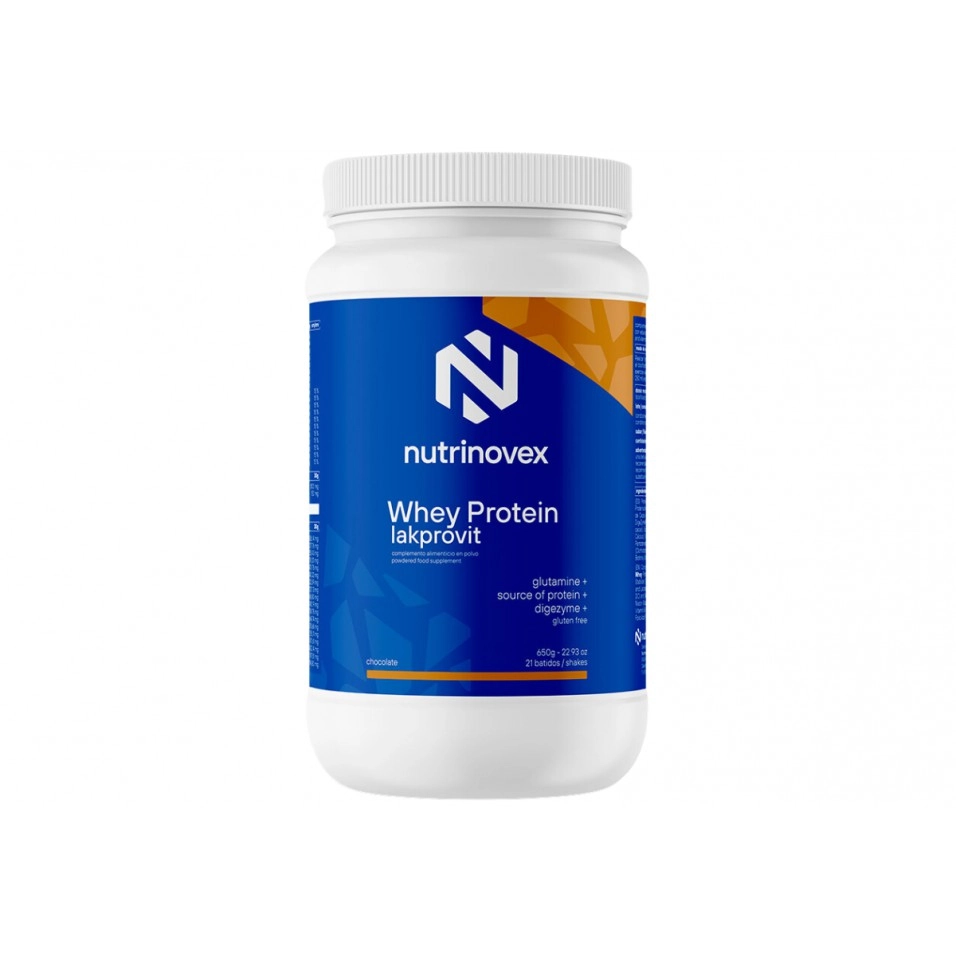Nutrinovex Lakprovit Whey Protein 650 g est un complément alimentaire à base de Protéines, L-Glutamine, Enzymes Digestives et Vitamines. Avec des édulcorants.